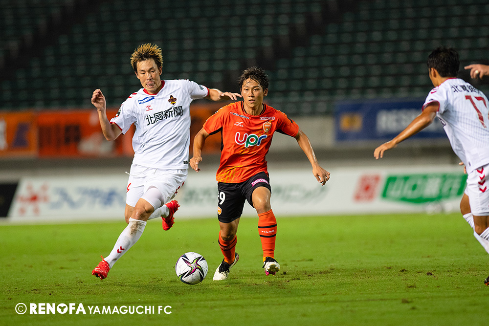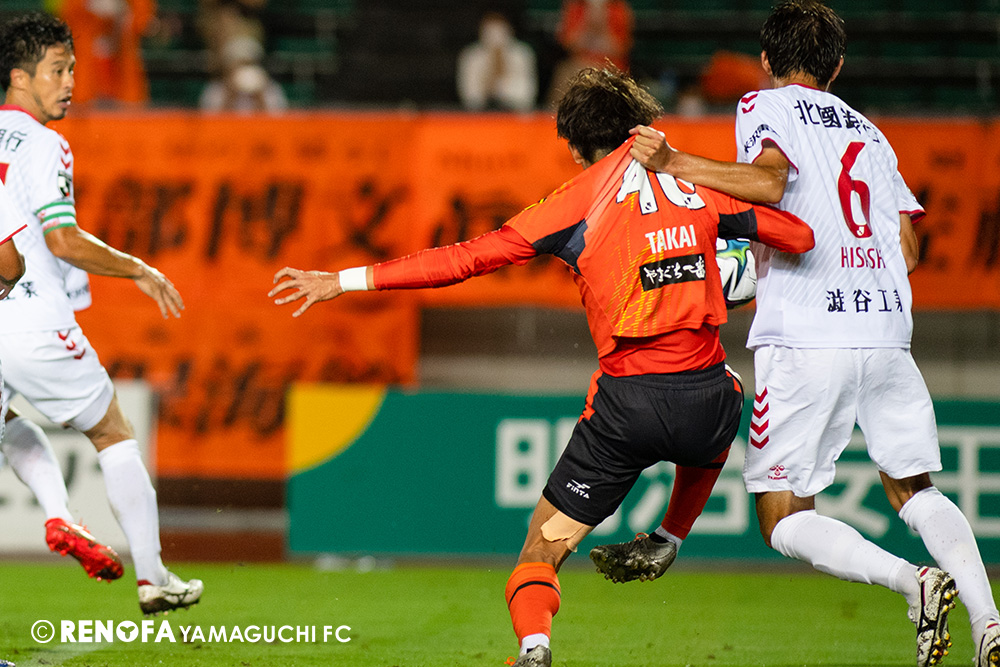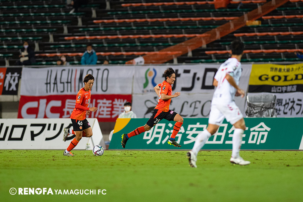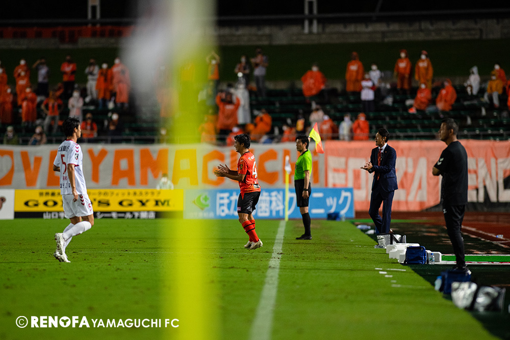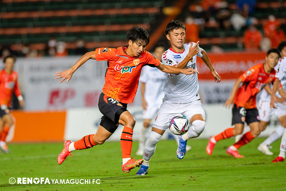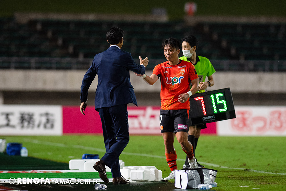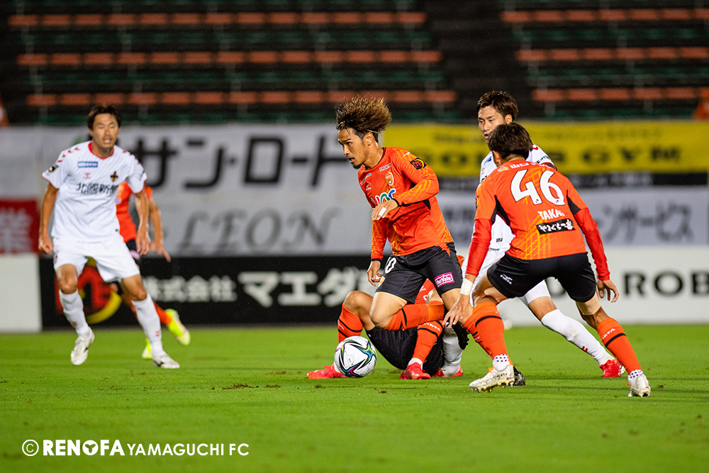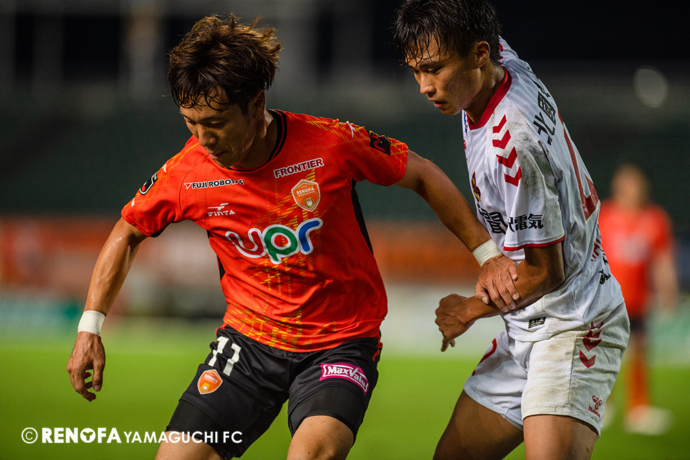 レノファに来て初めてゴールを決めましたが、最初は入ったのかなという感じでした。スーパーゴールではなかったので、素直にめっちゃ嬉しいとは言えないものでしたが、あのようなゴールもどんどん決めることができたらチームも勝てると思います。自分のストロングポイントのミドルシュートも増やしていければと思います。