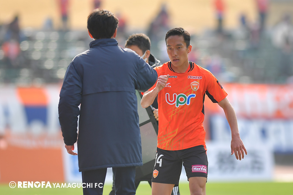 琉球戦で早々に失点しましたから、今節のゲームの中でも立ち上がりは集中力高く入ろうという話をしていました。実際にキックオフから早々にコーナーキックを得られ、入りとしては前節とは違うものを見せることができたと思います。ただ、そのあとの失点はまだ早く、そこから前進できていません。後手を踏む時間が長くなりました。上手く行かなかった45分だったと思っています。