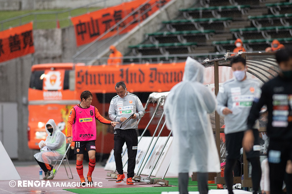 そういう選手をサブにも入れられないのは監督にとっては心苦しいですが、今日のゲームに関しては雨予報ということで、彼をストライカーの位置に入れてターゲットにするというプランと、最後に逃げ切るためにボランチに入れて相手の攻撃を跳ね返すという二つのタスクを与え、実際に二つ目のプランで彼は全うしてくれました。これも澤井直人のゴールを一緒で、サッカーの神様が見ていて、プロフェッショナルで真摯な姿を見せているからこそ、素晴らしいゲームの締め方をキクとともにしてくれたと思います。