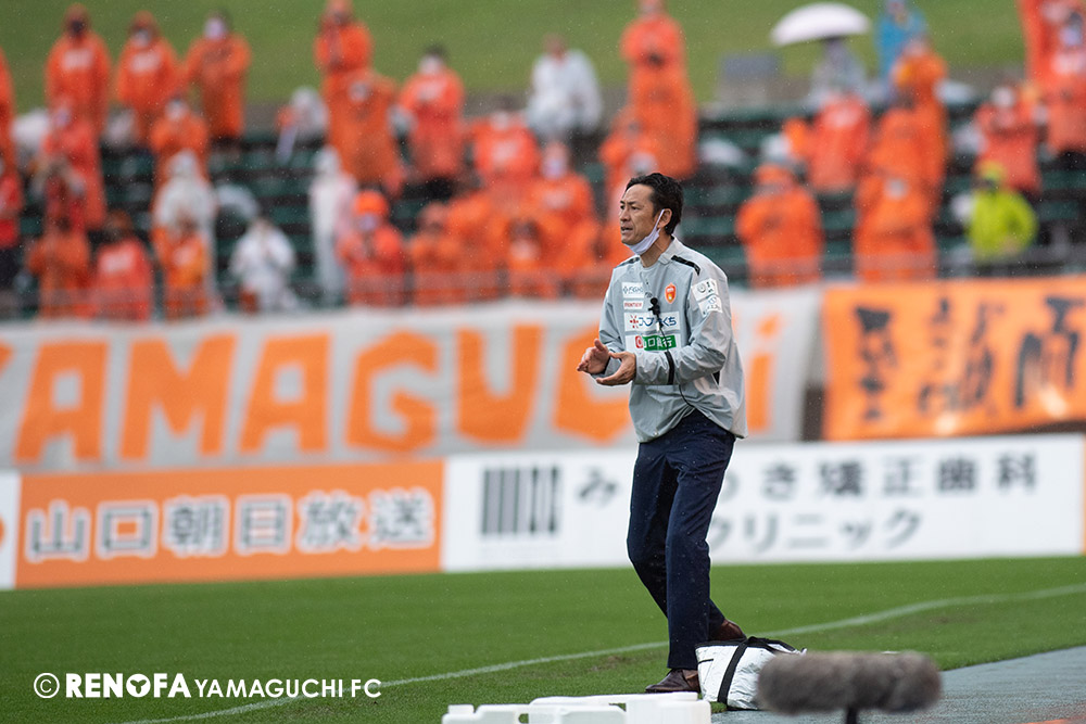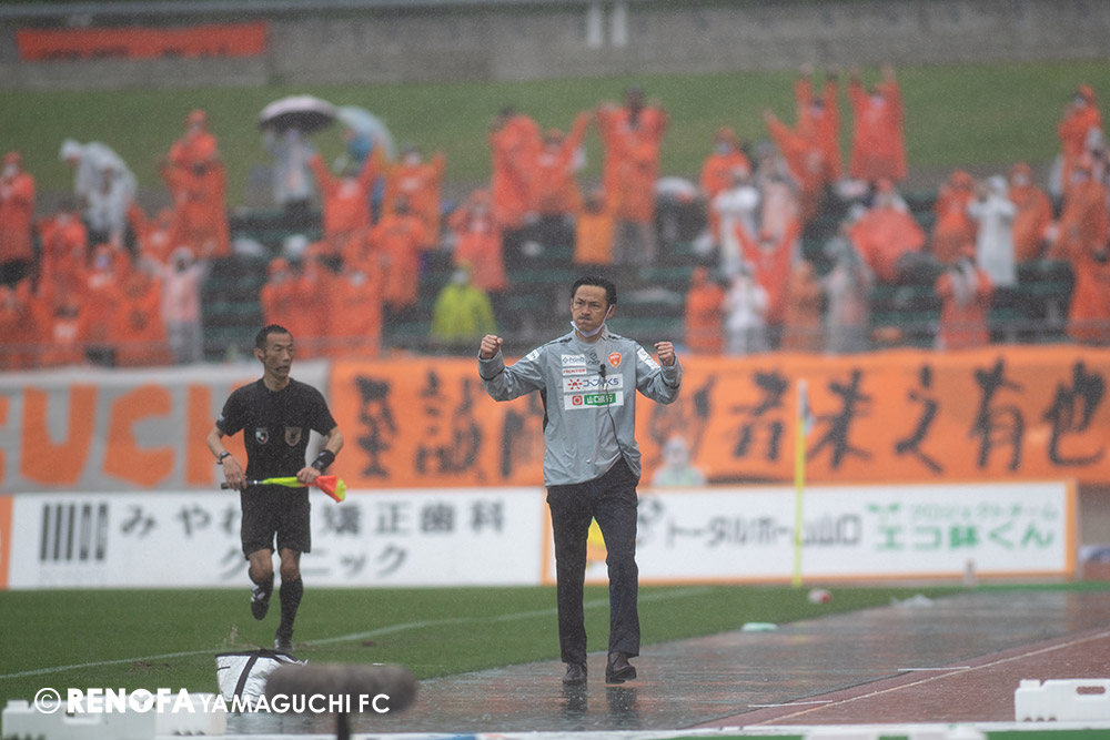 雨の中、大勢のサポーターに集まっていただきありがとうございます。サポーターのみなさんの応援が、我々の決勝ゴールに繋がったと思っています。選手も背中を押されたと思いますし、今日に関しては粘り強く攻め続けることに関して、最後までやりきることができ、ゴールが生まれました。サポーターと一緒に掴んだゴールと勝利だったと思います。