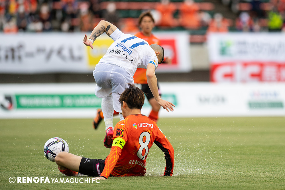 足元が滑るというよりも、大事なのはボールが動くかどうかです。岡山戦もそうでしたが、こういうピッチになってしまうというところに対しては準備をしてきましたし、朝からみなさんが(吐水作業に)たくさん協力してくれて、これくらいのピッチにしてくれたことには本当に感謝しています。ただ、どうしても止まってしまう場所がありますので、それを考えればリスクを取らずにシンプルな前半になったというのは致し方がなかったと思います。我々がもっとスピーディーにボールを動かし、相手を動かすということができれば前半から違った姿は見せられたのかもしれません。