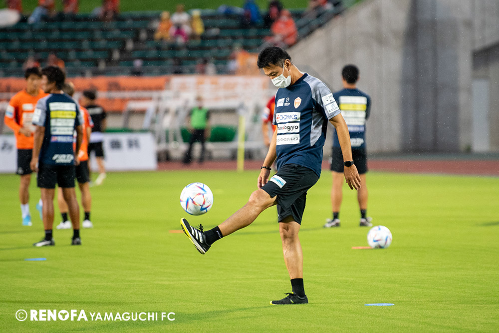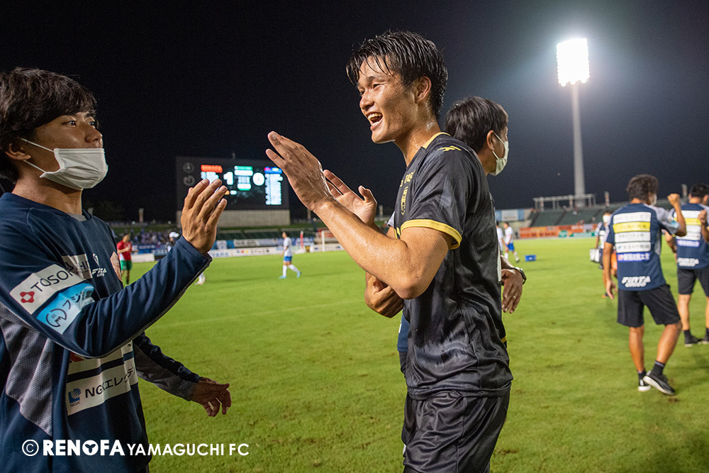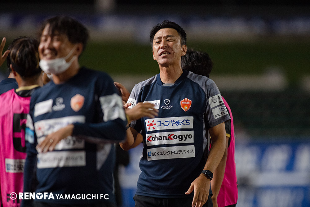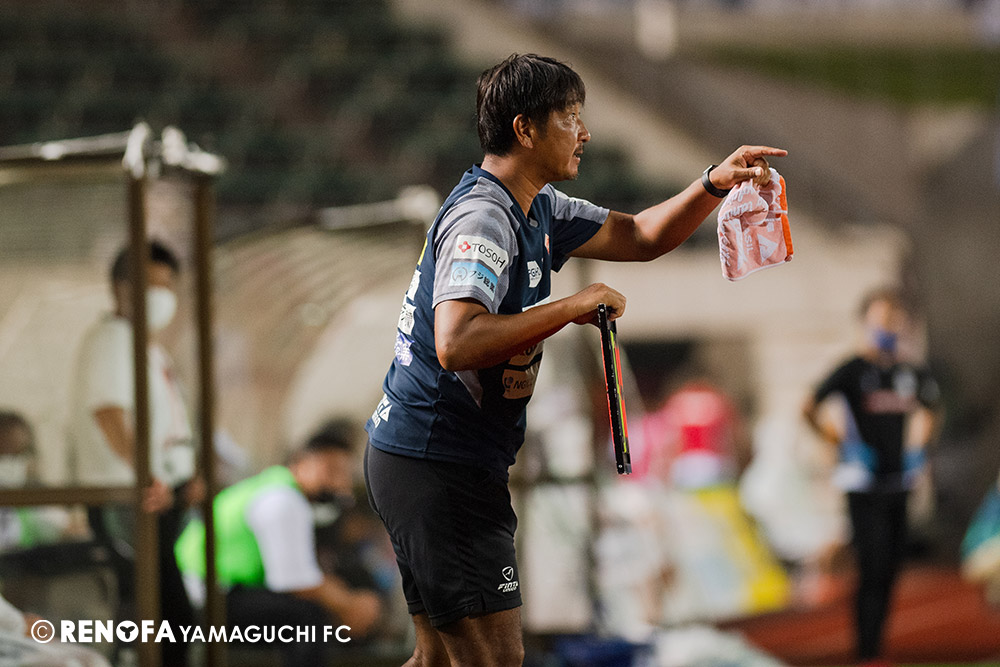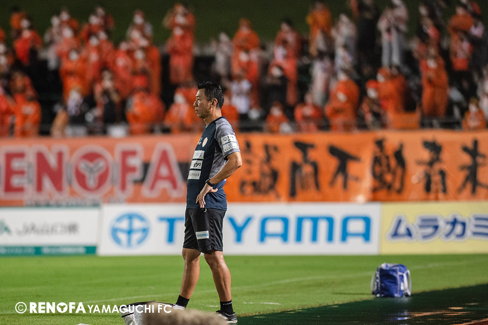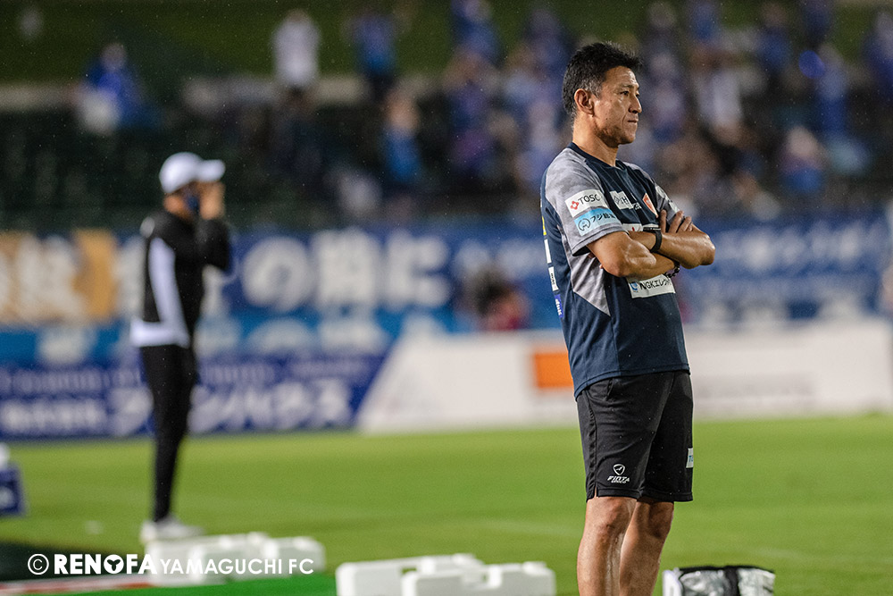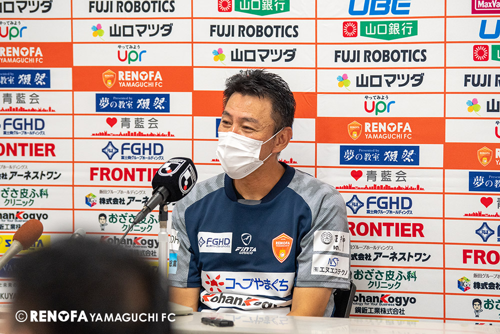 長く掛かった勝点3ですが、今日も雨の中、ホームにサポーターがいっぱい詰めかけてくれて、後押ししてくれて勝てた試合だと思います。山口は若い力が力になっています。冬は高川学園さんは良い成績でしたし、今は下関国際さんが素晴らしい諦めない戦いをしてくれています。逆に僕らが力をもらっていますので、プロとして恥ずかしくない試合をしないといけないと思っています。みなさんに勇気や感動、がんばろうという気持ちにさせるのがプロスポーツのチームだと思います。まだまだ発展途上のチームですが、気持ちは見せてくれたと思いますので、次の徳島さんにも前向きなサッカー、諦めないサッカーをしていきたいと思います。
