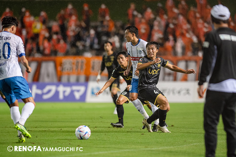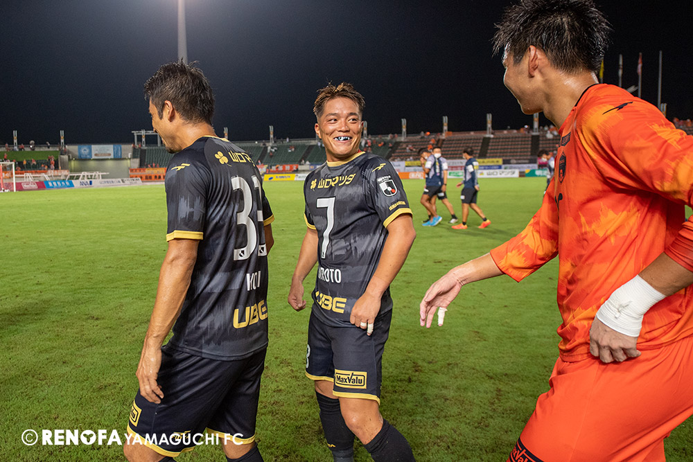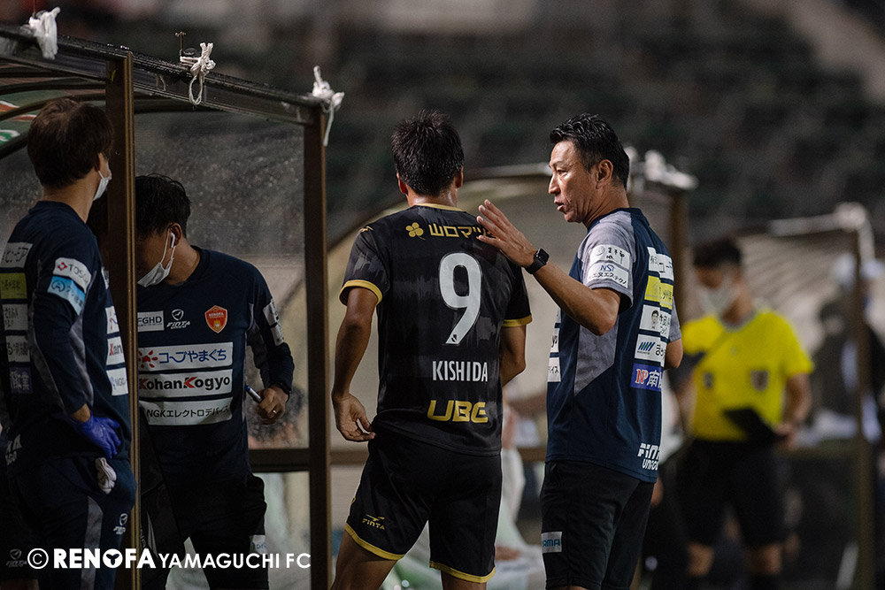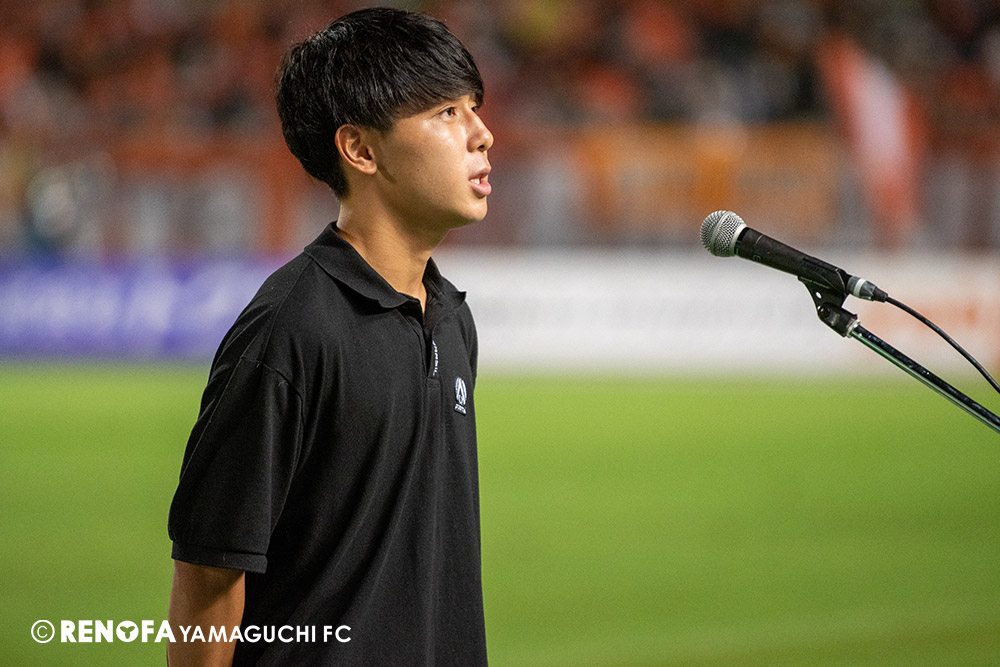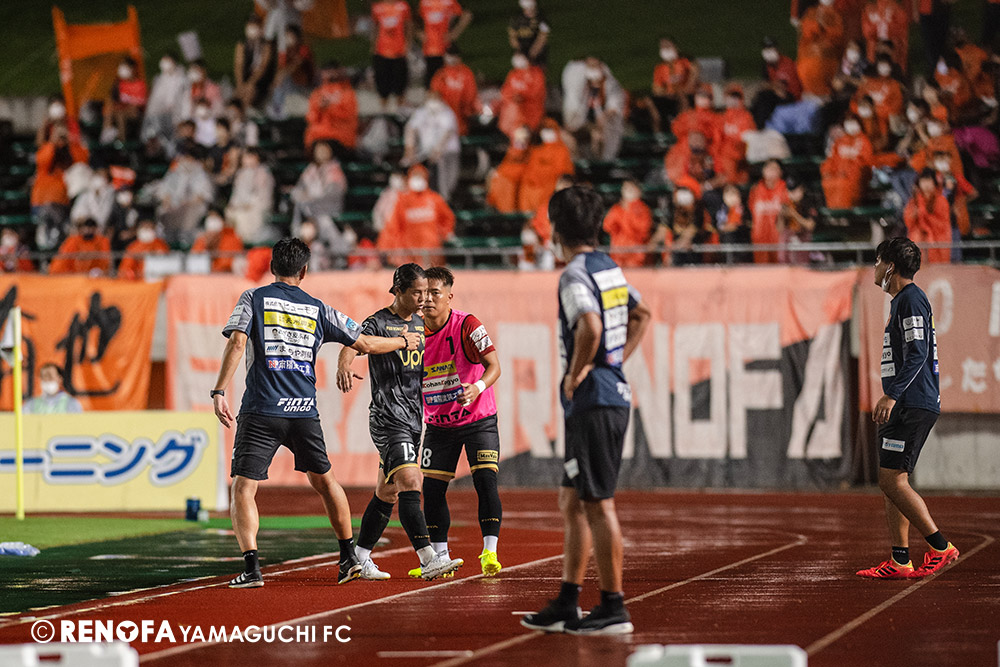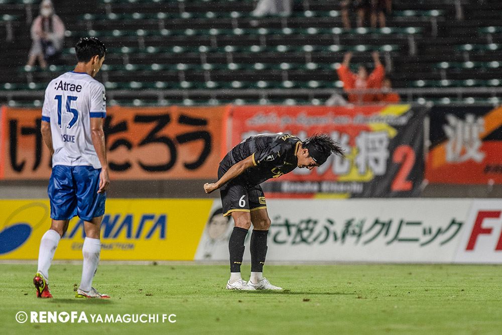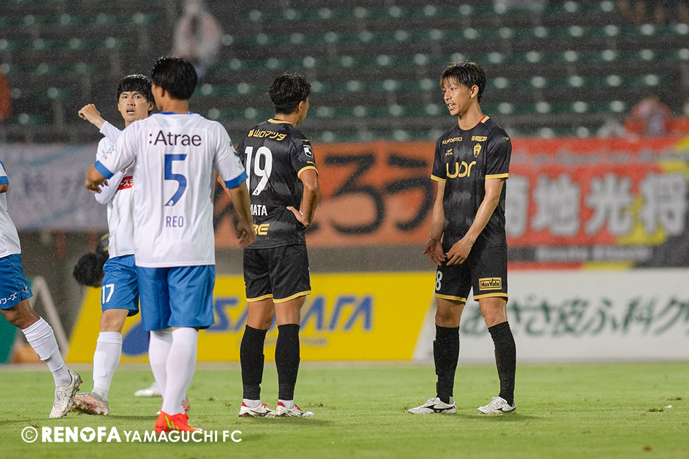 長く掛かった勝点3ですが、今日も雨の中、ホームにサポーターがいっぱい詰めかけてくれて、後押ししてくれて勝てた試合だと思います。山口は若い力が力になっています。冬は高川学園さんは良い成績でしたし、今は下関国際さんが素晴らしい諦めない戦いをしてくれています。逆に僕らが力をもらっていますので、プロとして恥ずかしくない試合をしないといけないと思っています。みなさんに勇気や感動、がんばろうという気持ちにさせるのがプロスポーツのチームだと思います。まだまだ発展途上のチームですが、気持ちは見せてくれたと思いますので、次の徳島さんにも前向きなサッカー、諦めないサッカーをしていきたいと思います。