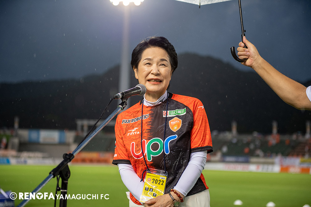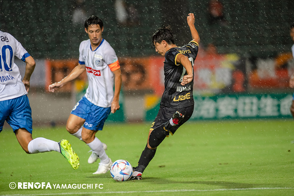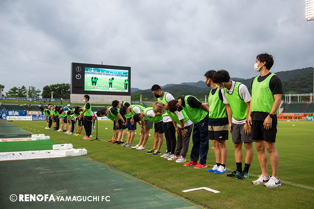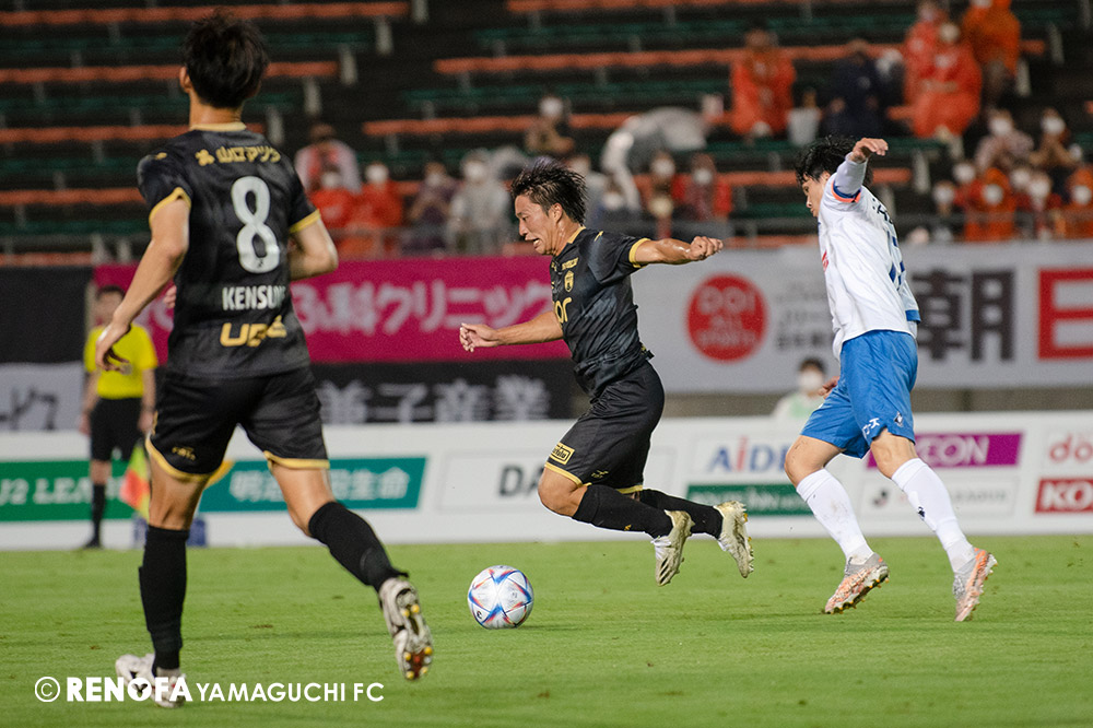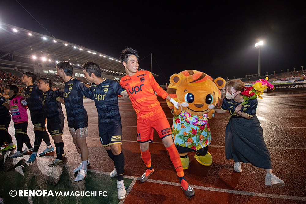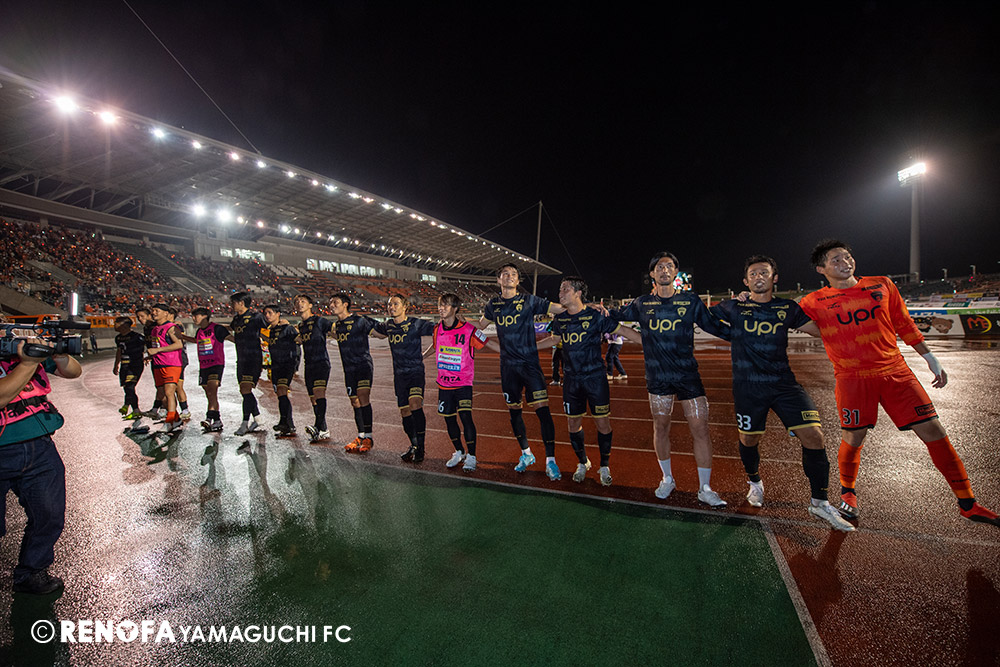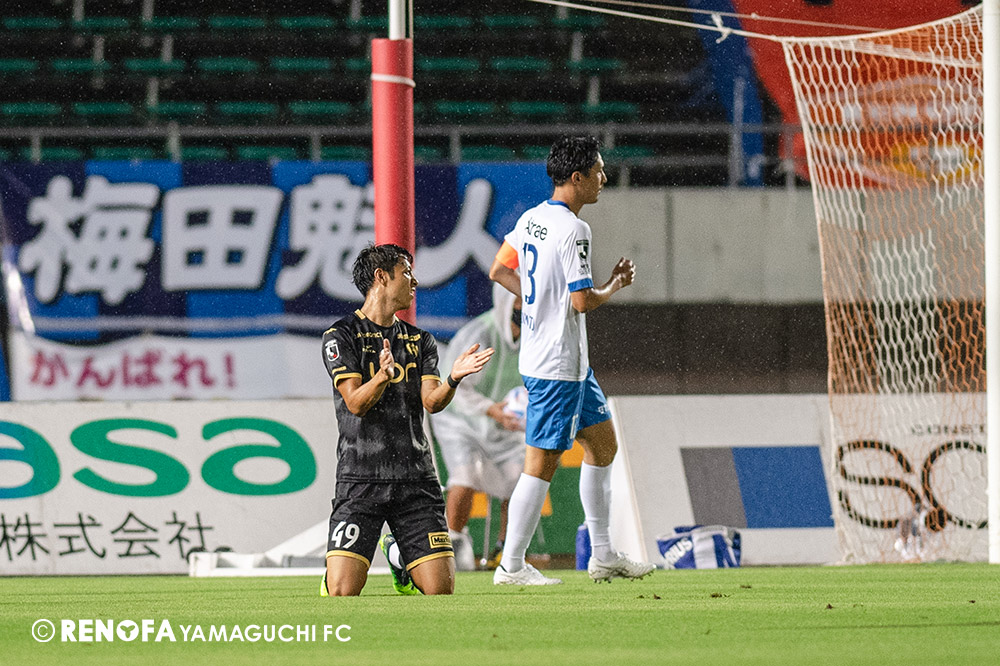 長く掛かった勝点3ですが、今日も雨の中、ホームにサポーターがいっぱい詰めかけてくれて、後押ししてくれて勝てた試合だと思います。山口は若い力が力になっています。冬は高川学園さんは良い成績でしたし、今は下関国際さんが素晴らしい諦めない戦いをしてくれています。逆に僕らが力をもらっていますので、プロとして恥ずかしくない試合をしないといけないと思っています。みなさんに勇気や感動、がんばろうという気持ちにさせるのがプロスポーツのチームだと思います。まだまだ発展途上のチームですが、気持ちは見せてくれたと思いますので、次の徳島さんにも前向きなサッカー、諦めないサッカーをしていきたいと思います。