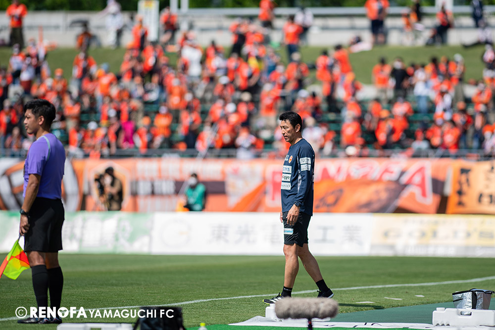 チームの狙いとしてボールをうまく動かしながら3トップが背後を狙うというのもずっとやってきています。今日は、球際に負けてしまったという課題が要所要所で浮き彫りになってしまいましたので、中2日の山形戦に向けて切り替えてやっていきたいと思います。