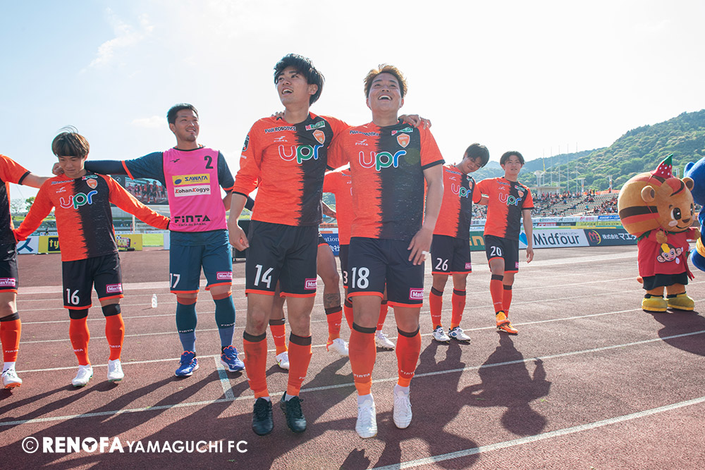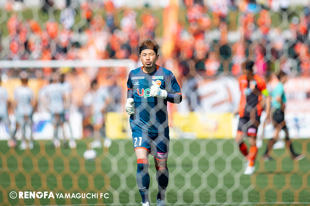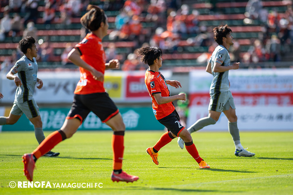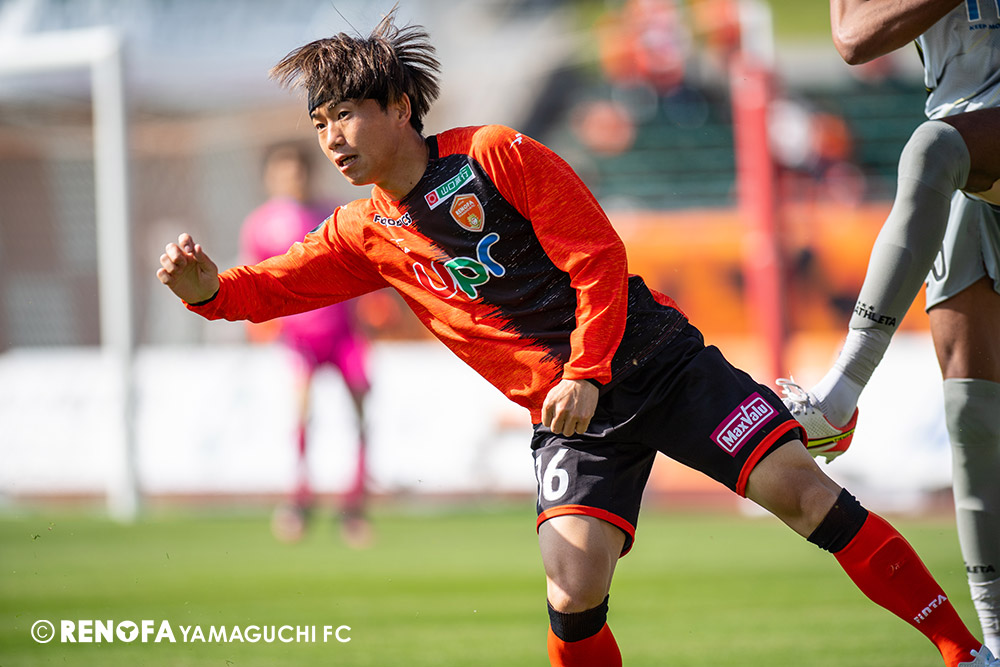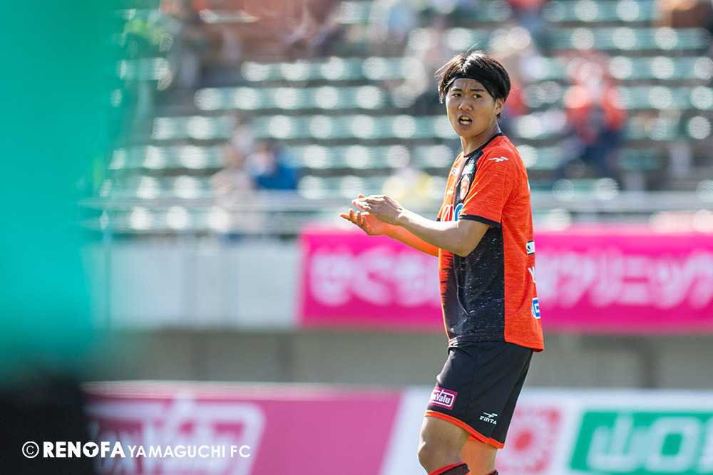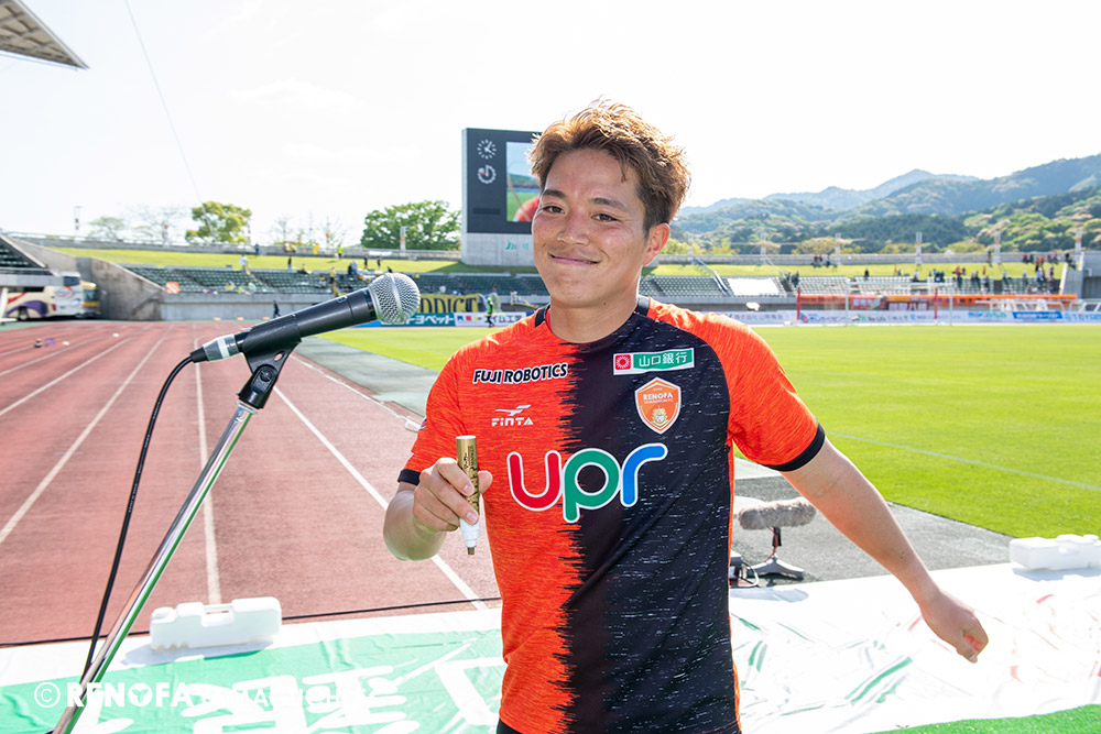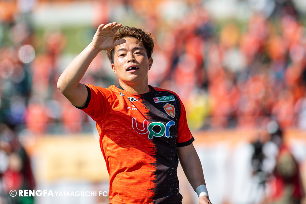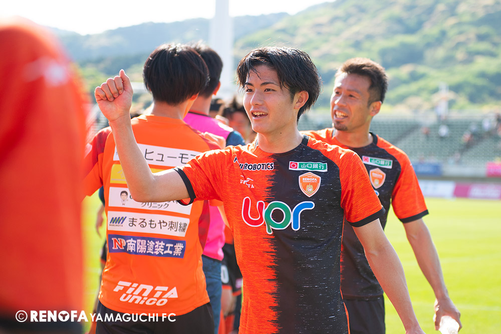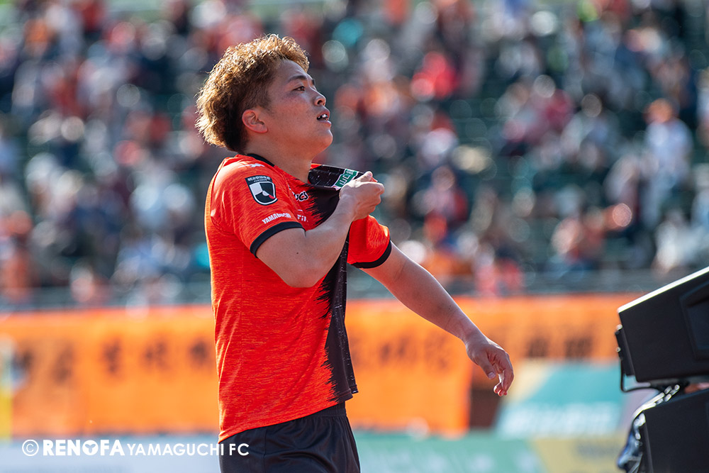 あの時間帯での失点は気持ちが折れるものはありますが、コーナーを取れたのは誰も諦めていないという証拠だと思います。引き分けに終わっていたら後味が悪くなっていたと思いますが、ここでもう一度、レノファを応援するみんなで戦いたいという気持ちがあって、そういうジェスチャーをしました。僕らも勇気とパワーをもらいましたし、それが決勝点につながったと思います。本当にサポーターのみなさんに感謝しています。ホームは絶対に勝ちたいと思っていますので、情けない試合はできないですし、より多くのみなさんと勝って維新でヤマグチ一番を踊りたいと思います。