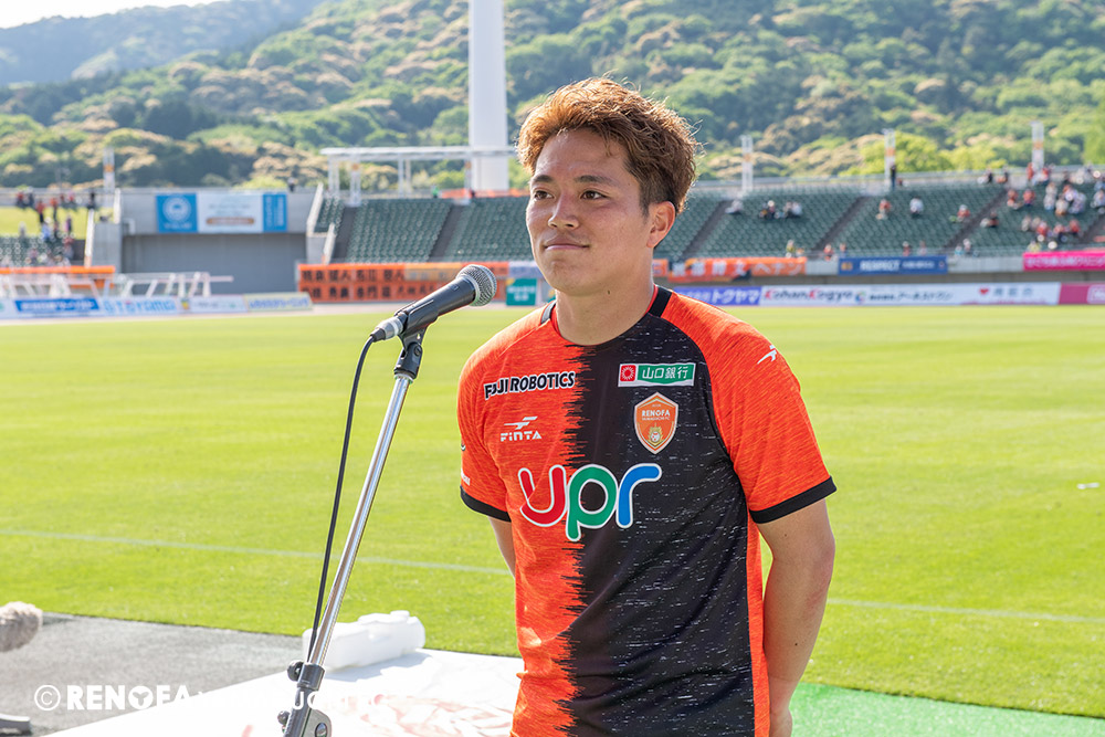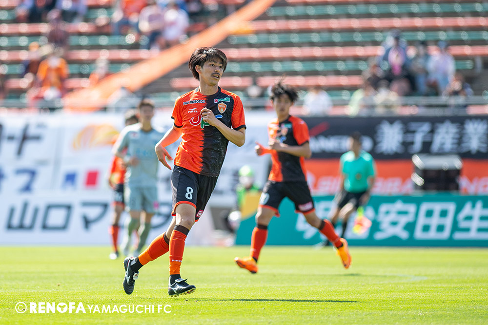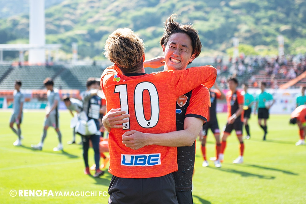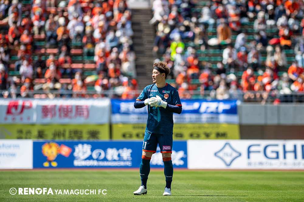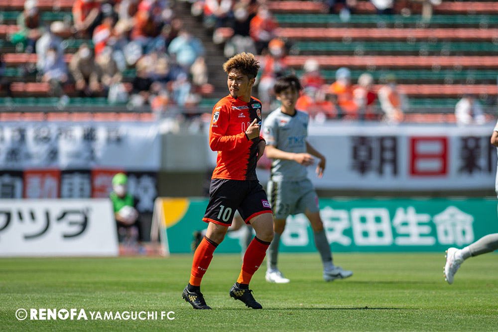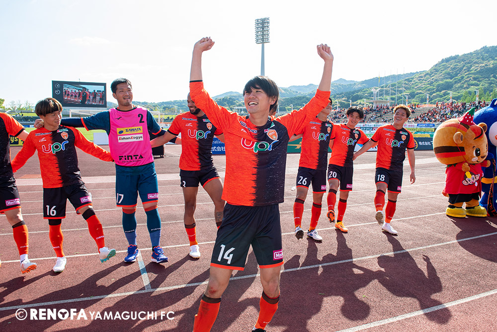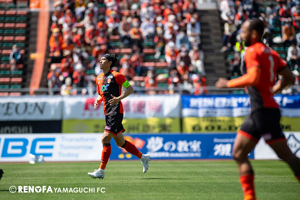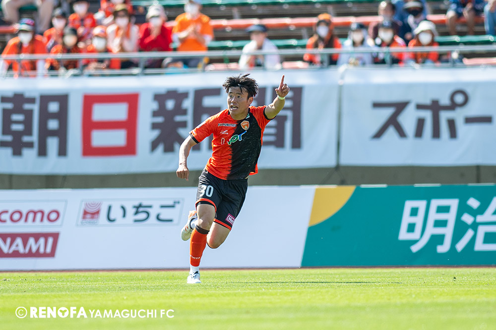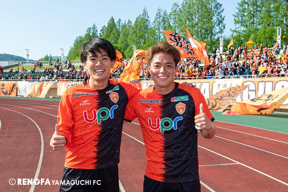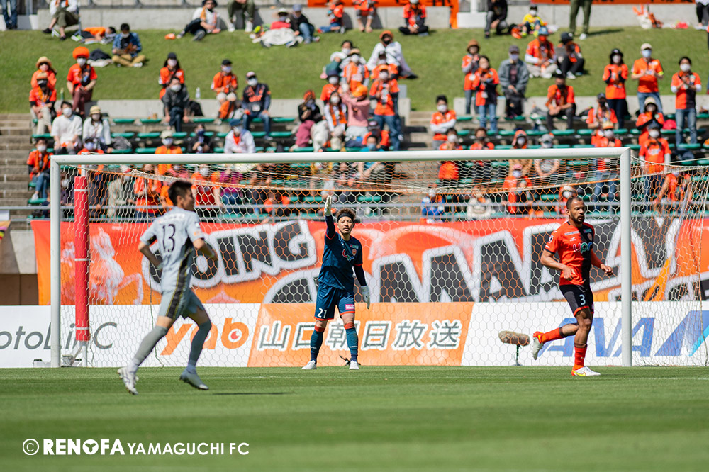 あの時間帯での失点は気持ちが折れるものはありますが、コーナーを取れたのは誰も諦めていないという証拠だと思います。引き分けに終わっていたら後味が悪くなっていたと思いますが、ここでもう一度、レノファを応援するみんなで戦いたいという気持ちがあって、そういうジェスチャーをしました。僕らも勇気とパワーをもらいましたし、それが決勝点につながったと思います。本当にサポーターのみなさんに感謝しています。ホームは絶対に勝ちたいと思っていますので、情けない試合はできないですし、より多くのみなさんと勝って維新でヤマグチ一番を踊りたいと思います。