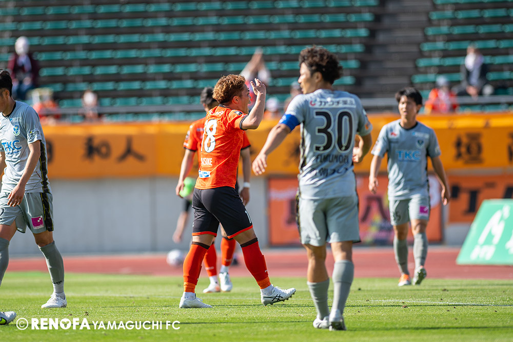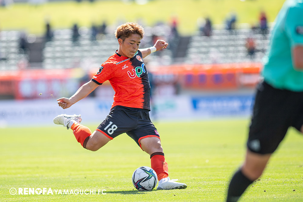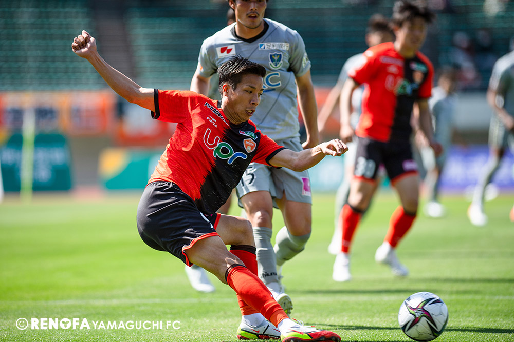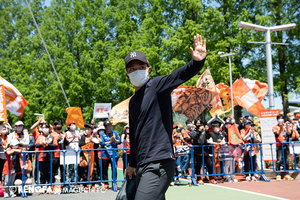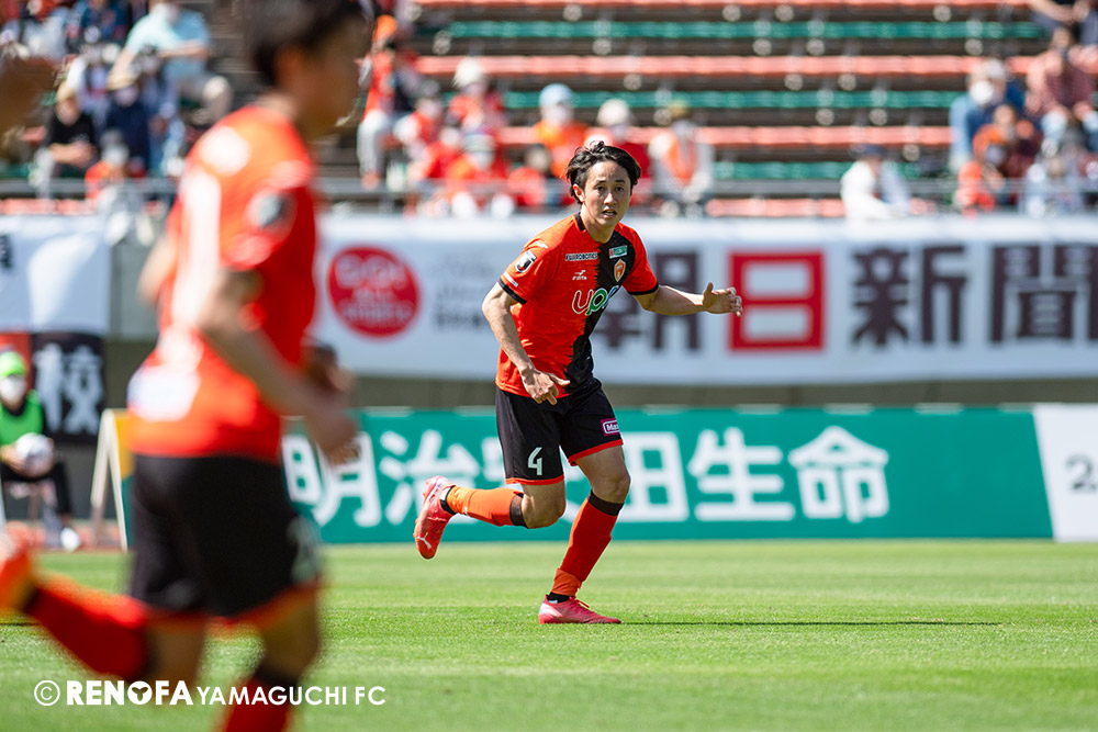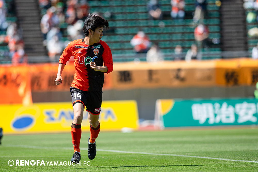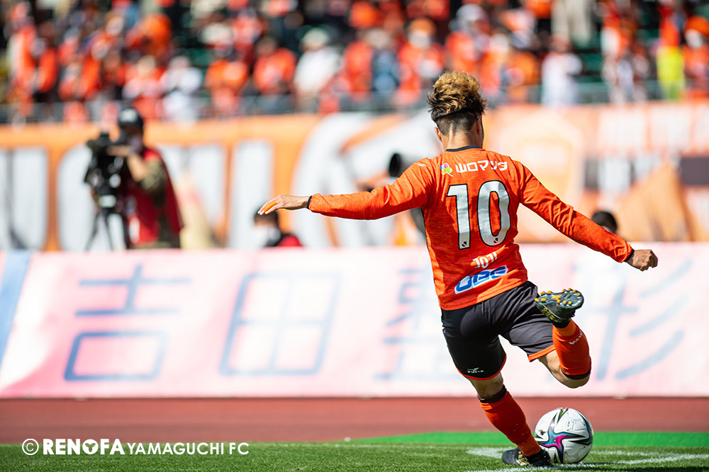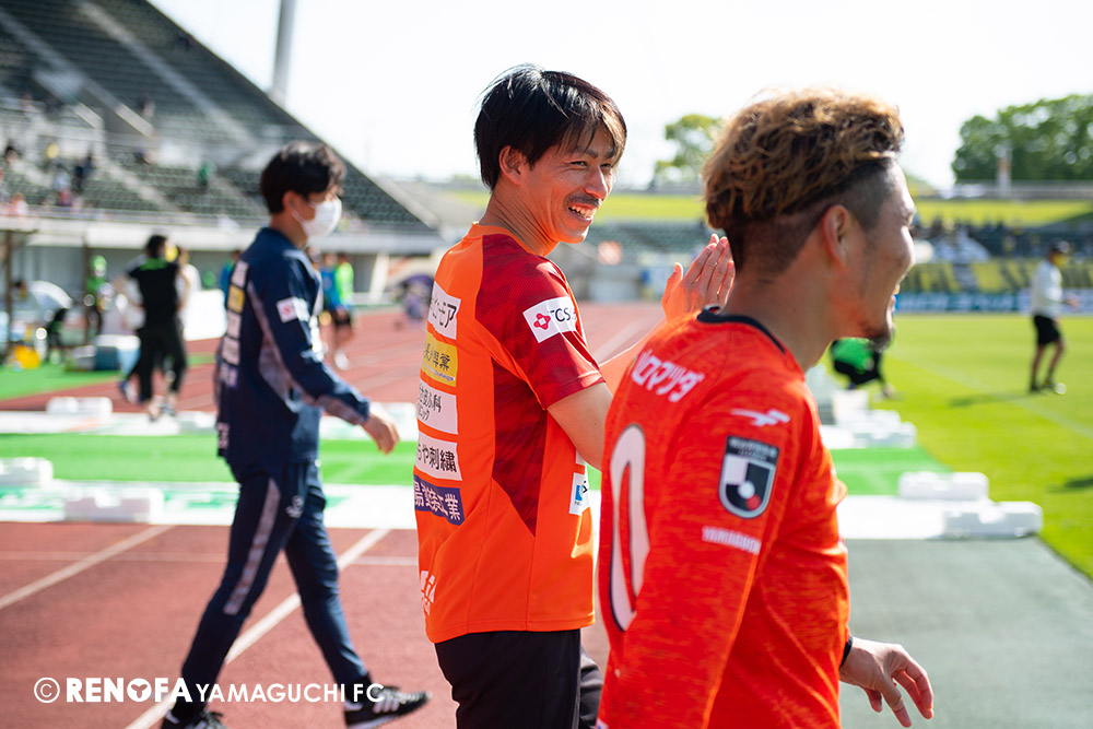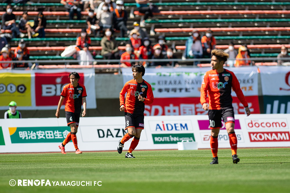 あの時間帯での失点は気持ちが折れるものはありますが、コーナーを取れたのは誰も諦めていないという証拠だと思います。引き分けに終わっていたら後味が悪くなっていたと思いますが、ここでもう一度、レノファを応援するみんなで戦いたいという気持ちがあって、そういうジェスチャーをしました。僕らも勇気とパワーをもらいましたし、それが決勝点につながったと思います。本当にサポーターのみなさんに感謝しています。ホームは絶対に勝ちたいと思っていますので、情けない試合はできないですし、より多くのみなさんと勝って維新でヤマグチ一番を踊りたいと思います。
