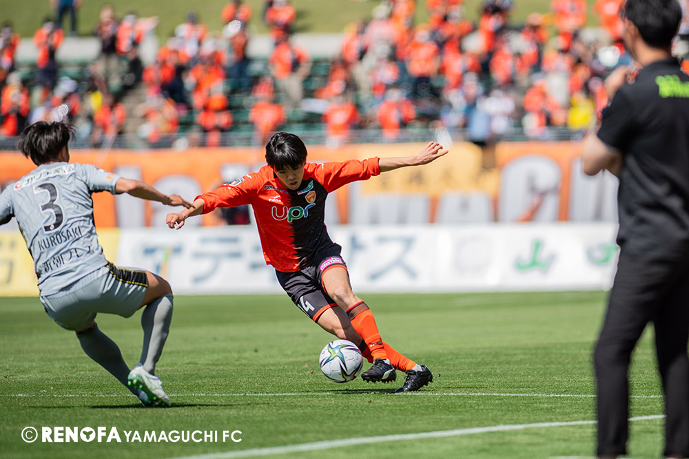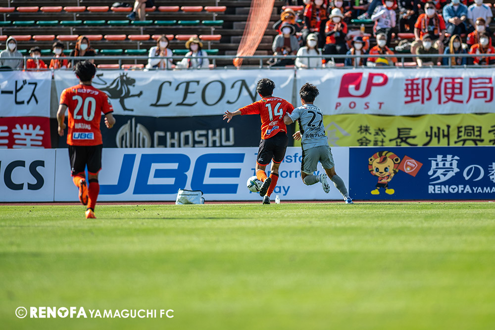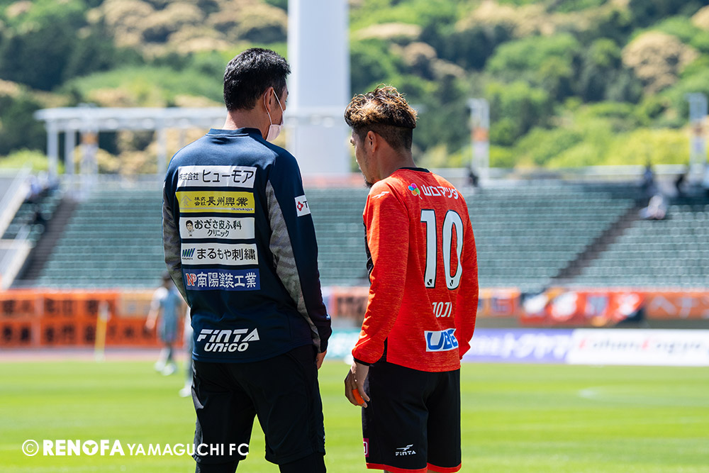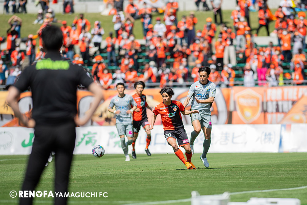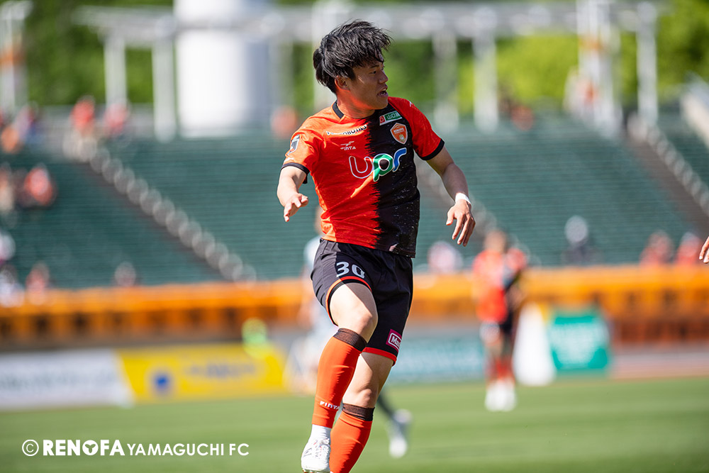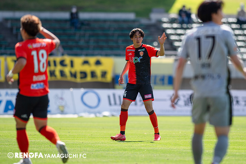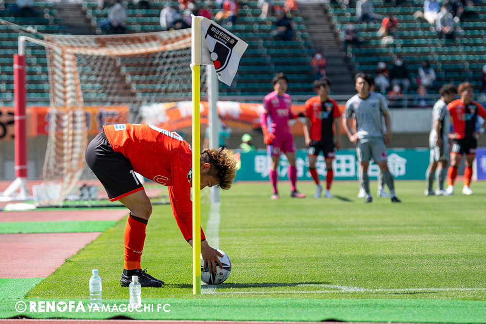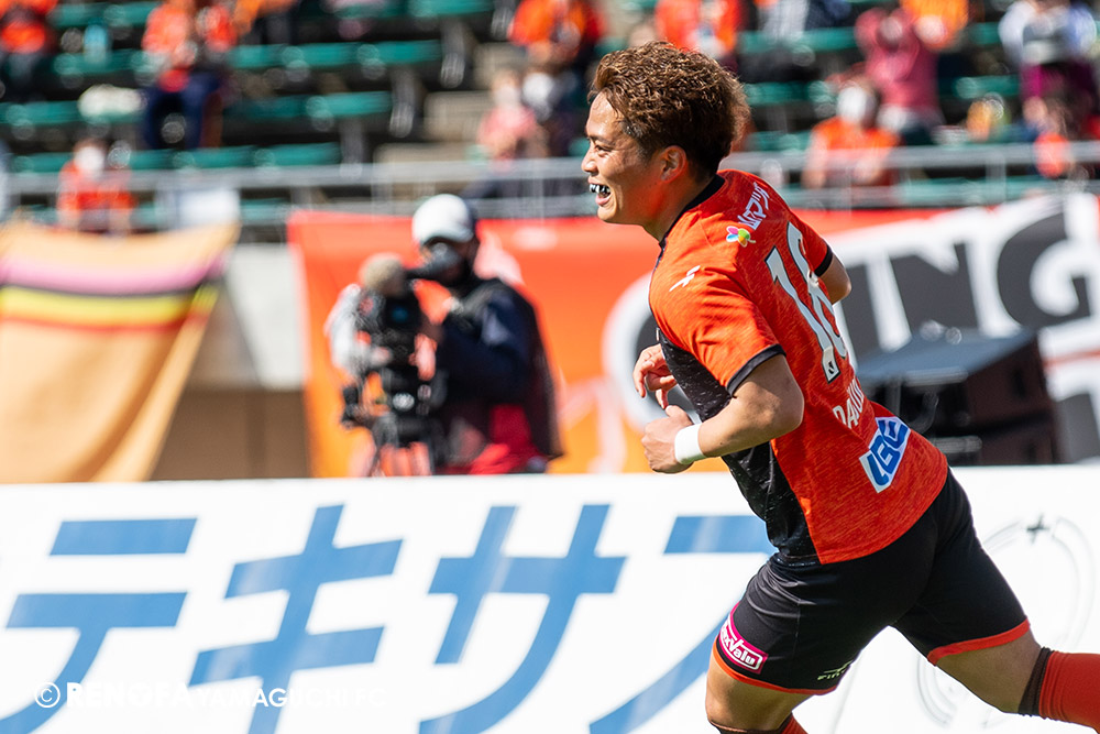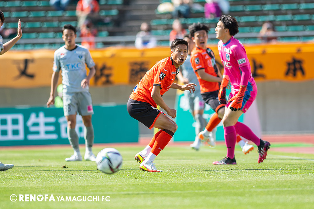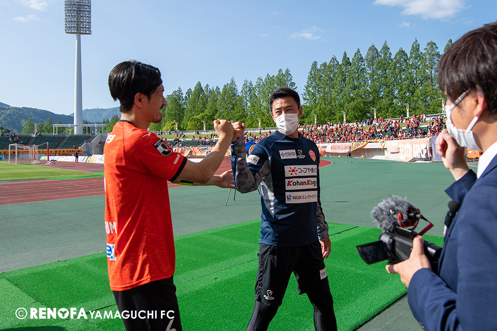 あの時間帯での失点は気持ちが折れるものはありますが、コーナーを取れたのは誰も諦めていないという証拠だと思います。引き分けに終わっていたら後味が悪くなっていたと思いますが、ここでもう一度、レノファを応援するみんなで戦いたいという気持ちがあって、そういうジェスチャーをしました。僕らも勇気とパワーをもらいましたし、それが決勝点につながったと思います。本当にサポーターのみなさんに感謝しています。ホームは絶対に勝ちたいと思っていますので、情けない試合はできないですし、より多くのみなさんと勝って維新でヤマグチ一番を踊りたいと思います。