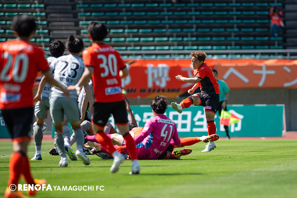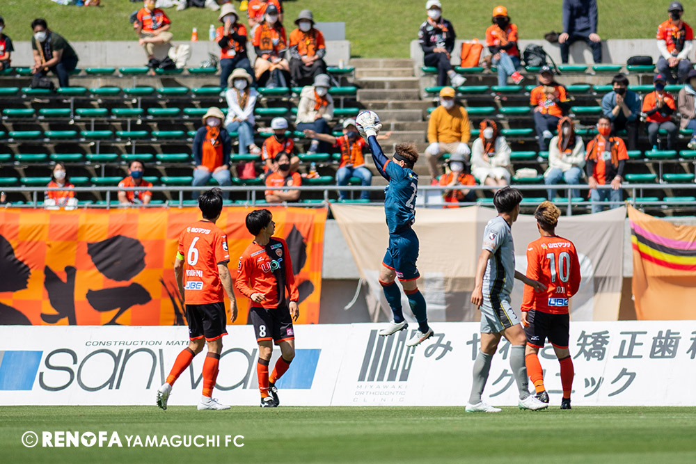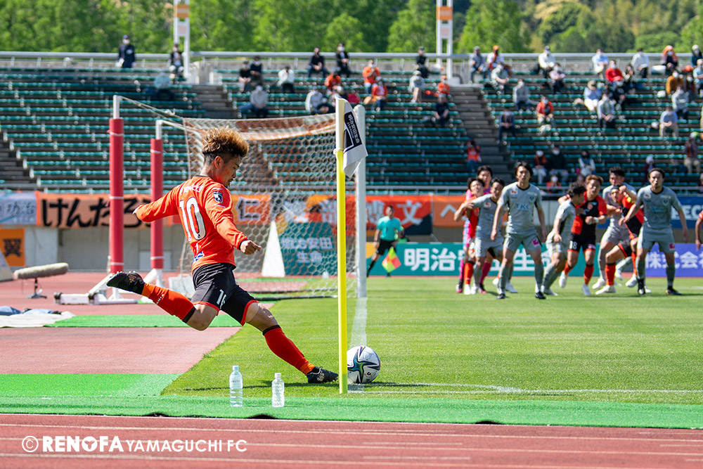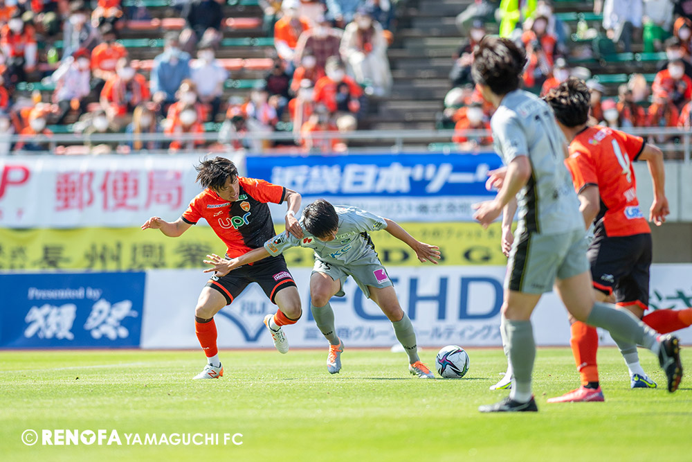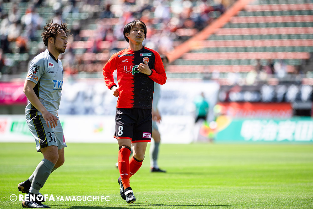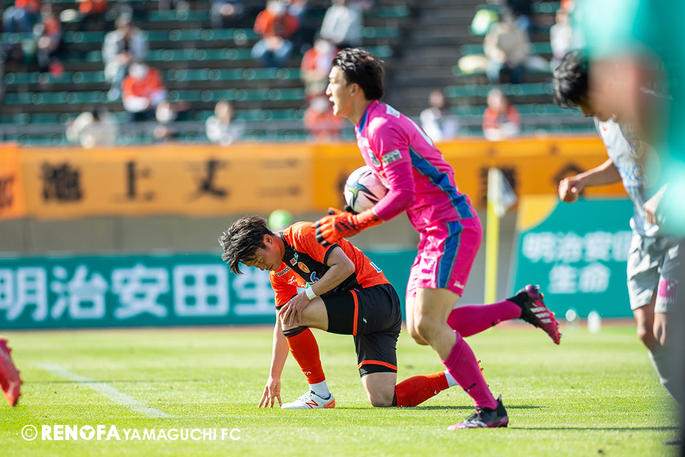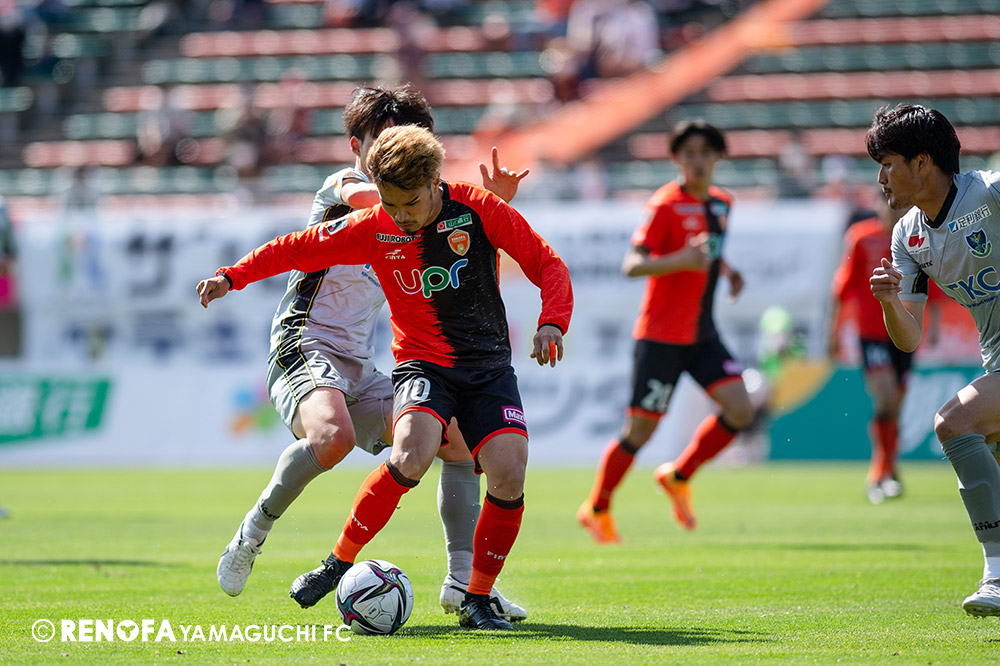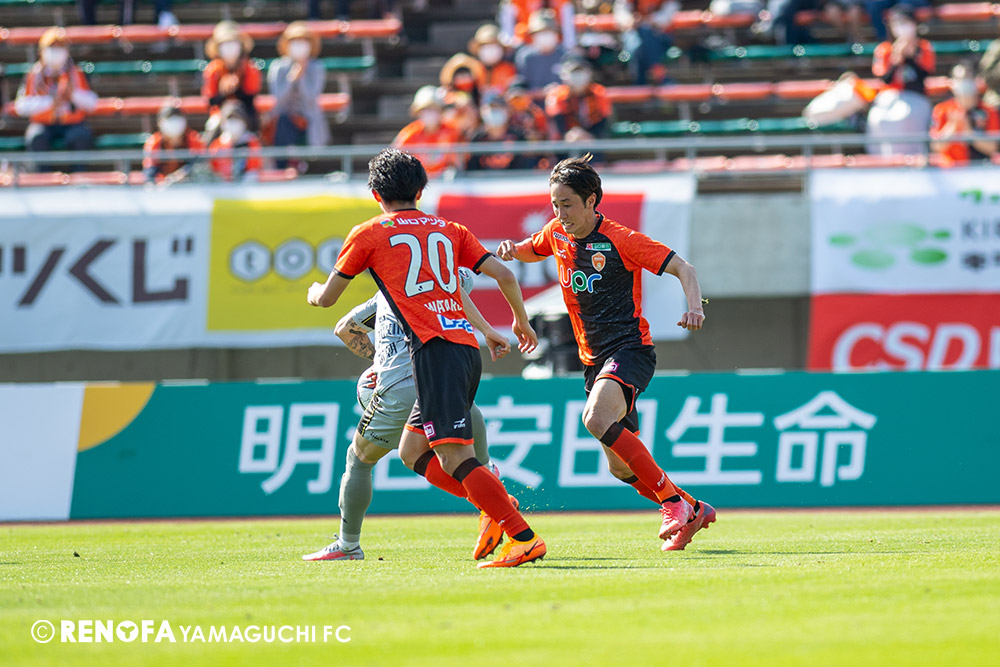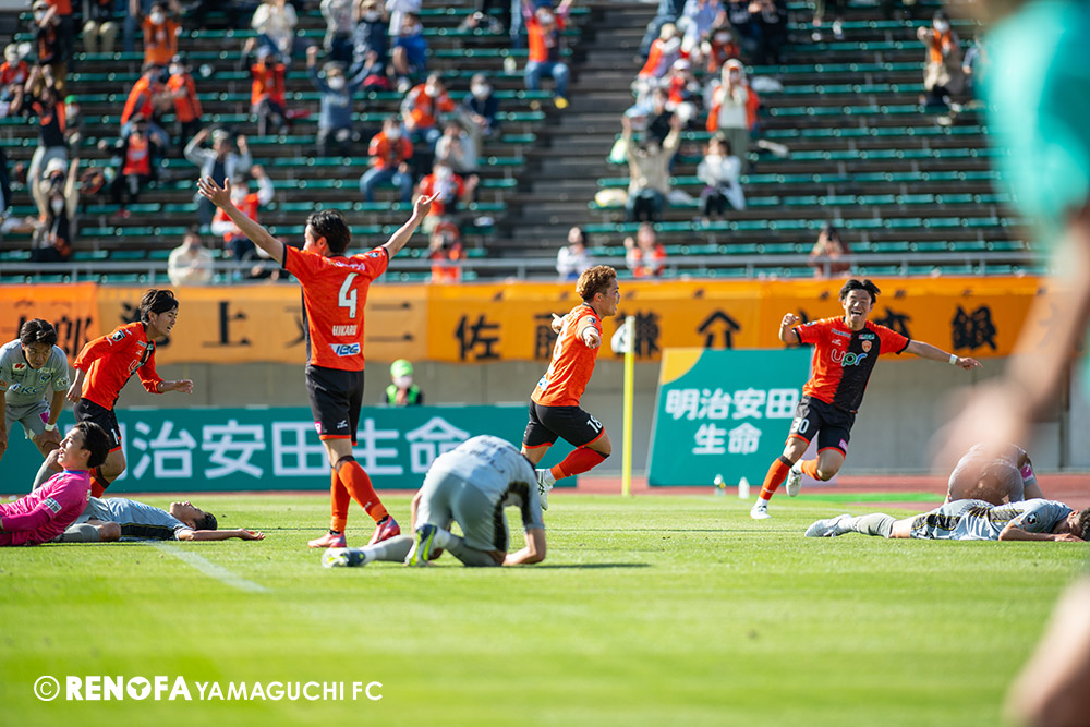 あの時間帯での失点は気持ちが折れるものはありますが、コーナーを取れたのは誰も諦めていないという証拠だと思います。引き分けに終わっていたら後味が悪くなっていたと思いますが、ここでもう一度、レノファを応援するみんなで戦いたいという気持ちがあって、そういうジェスチャーをしました。僕らも勇気とパワーをもらいましたし、それが決勝点につながったと思います。本当にサポーターのみなさんに感謝しています。ホームは絶対に勝ちたいと思っていますので、情けない試合はできないですし、より多くのみなさんと勝って維新でヤマグチ一番を踊りたいと思います。