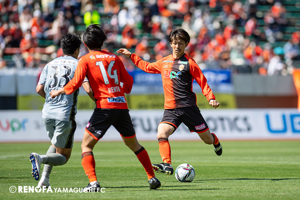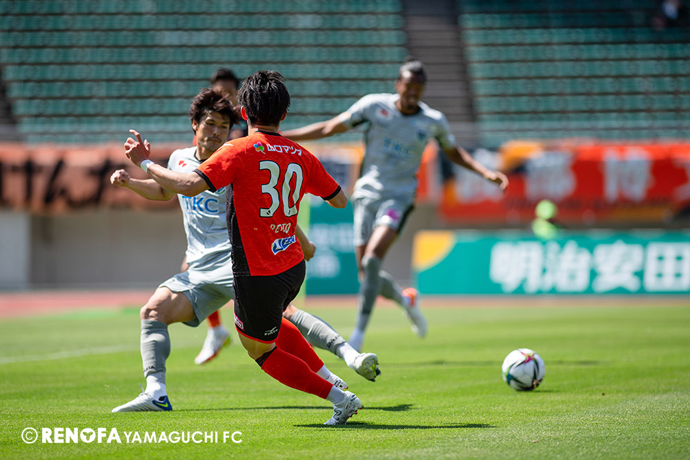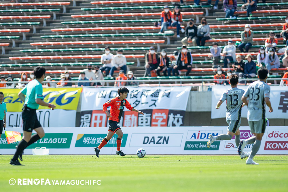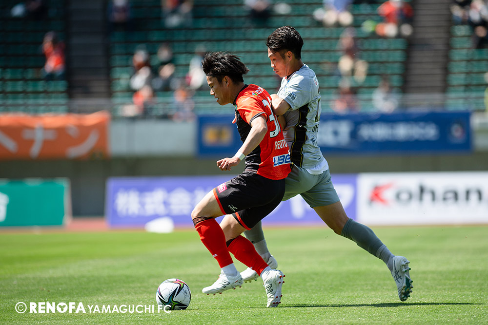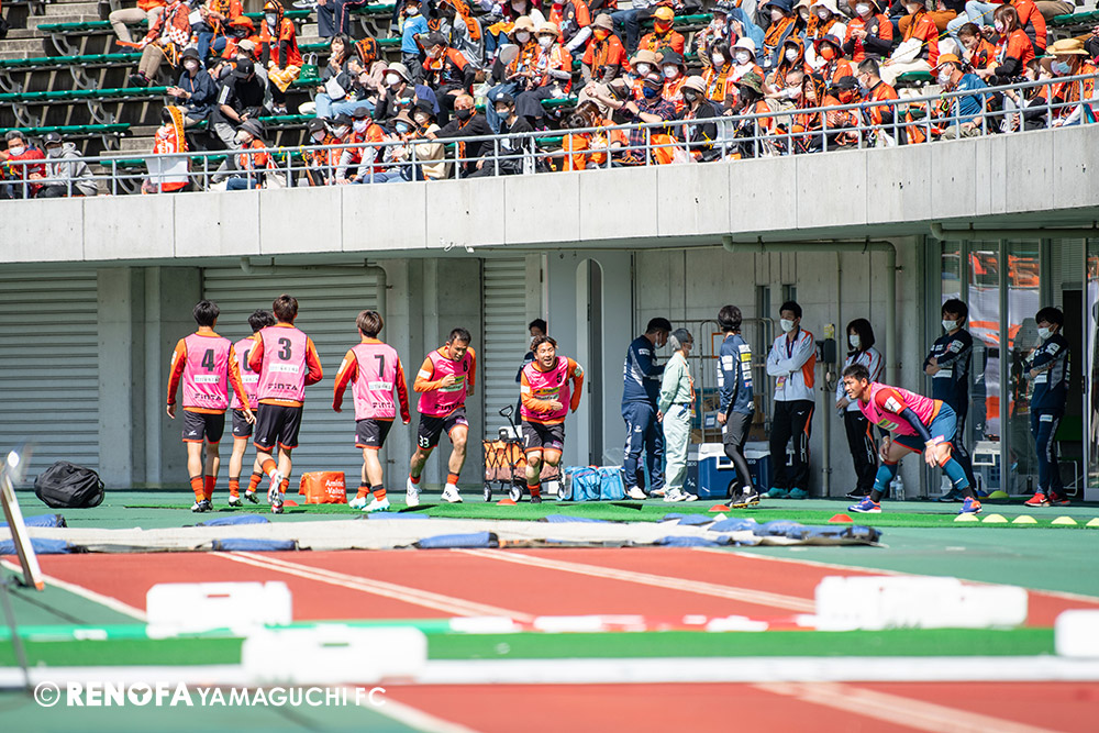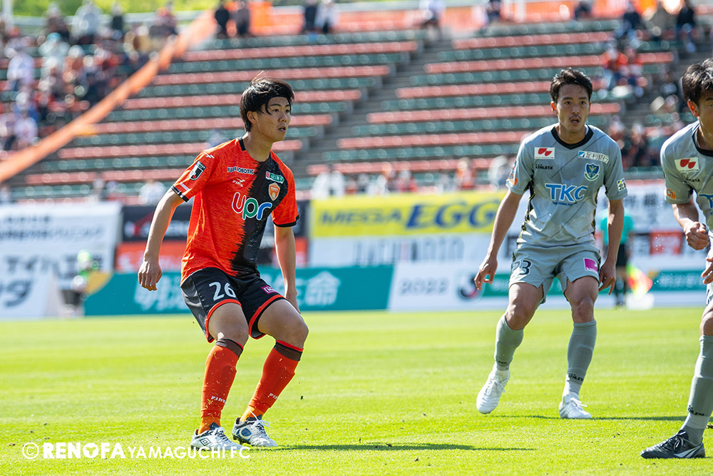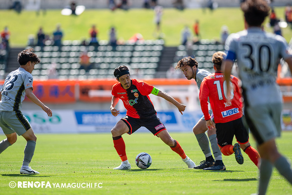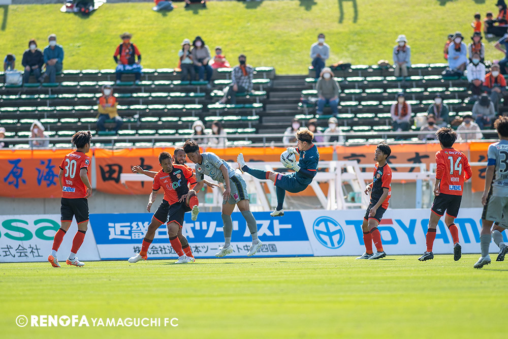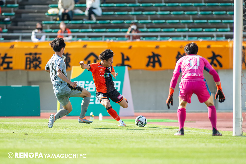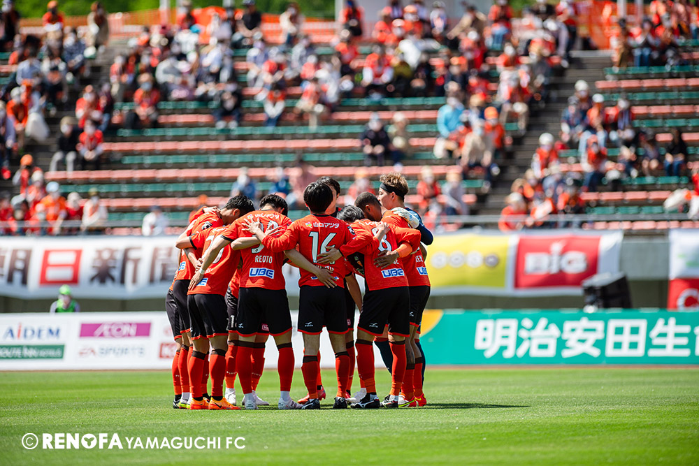 あの時間帯での失点は気持ちが折れるものはありますが、コーナーを取れたのは誰も諦めていないという証拠だと思います。引き分けに終わっていたら後味が悪くなっていたと思いますが、ここでもう一度、レノファを応援するみんなで戦いたいという気持ちがあって、そういうジェスチャーをしました。僕らも勇気とパワーをもらいましたし、それが決勝点につながったと思います。本当にサポーターのみなさんに感謝しています。ホームは絶対に勝ちたいと思っていますので、情けない試合はできないですし、より多くのみなさんと勝って維新でヤマグチ一番を踊りたいと思います。