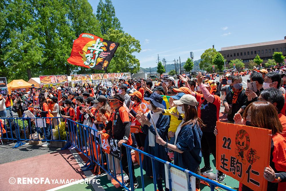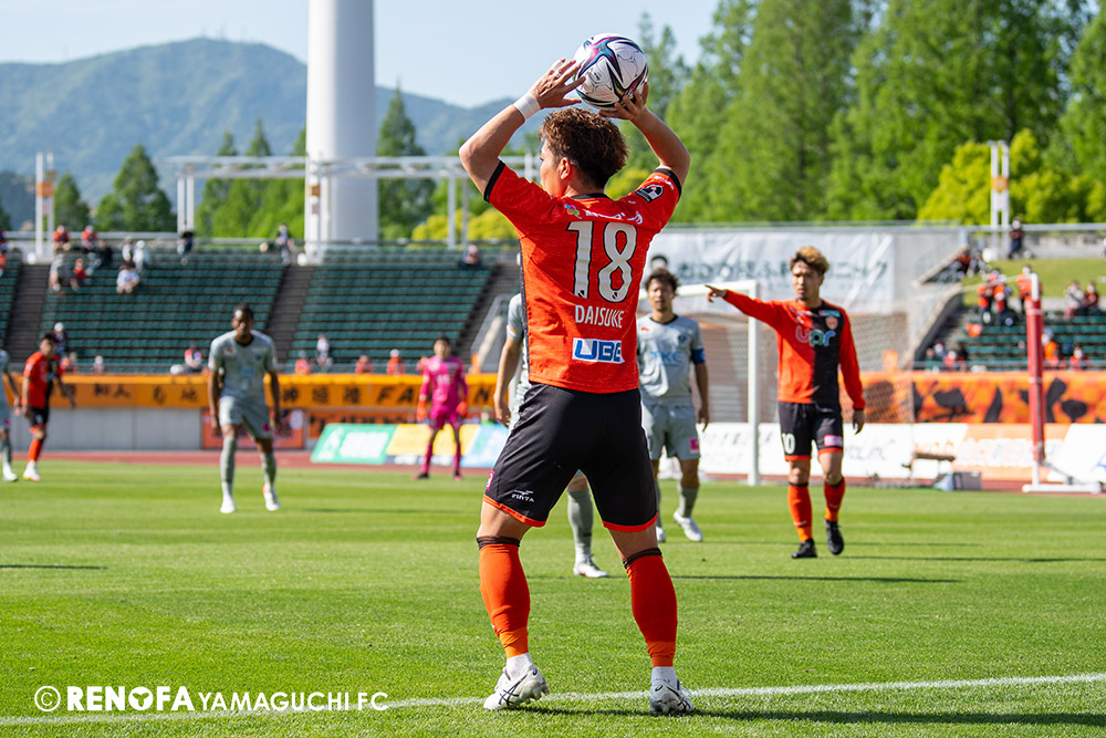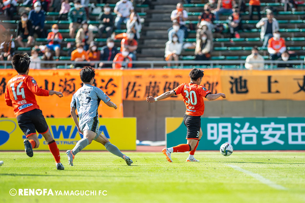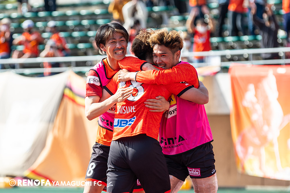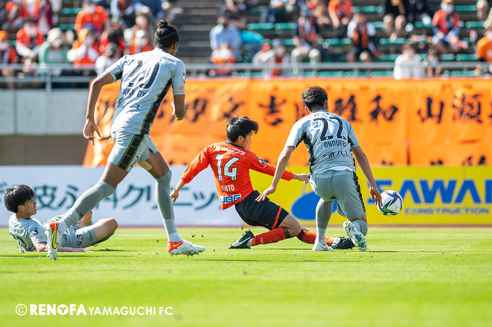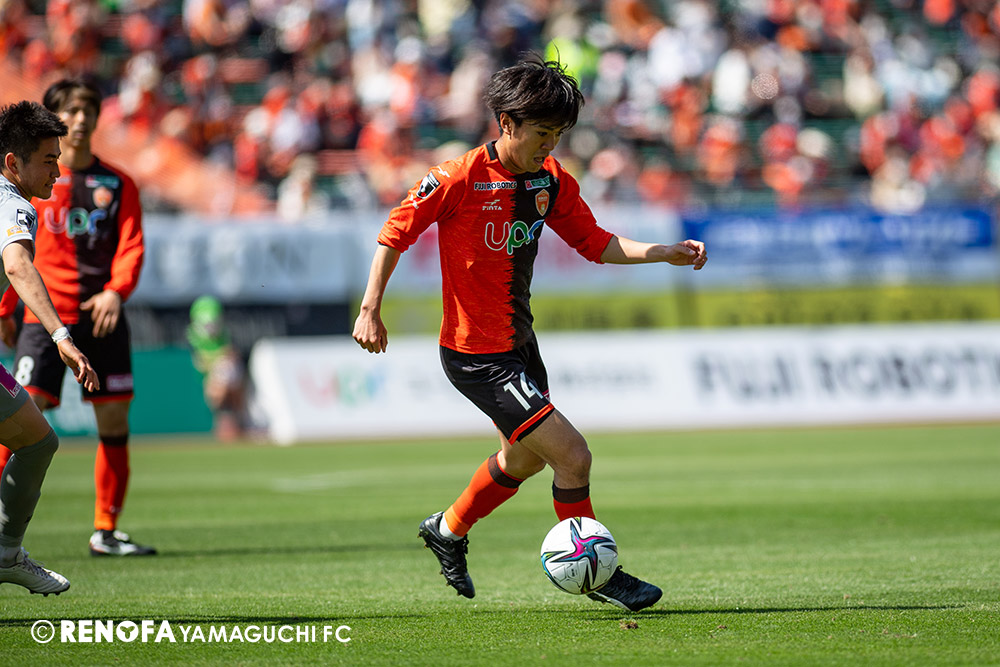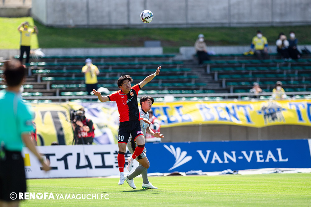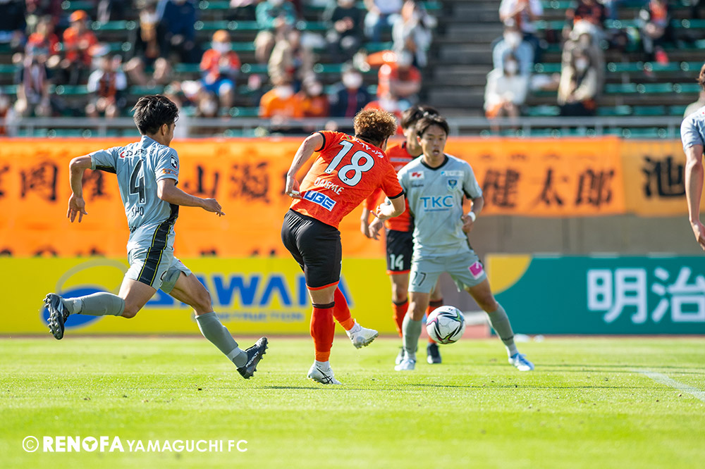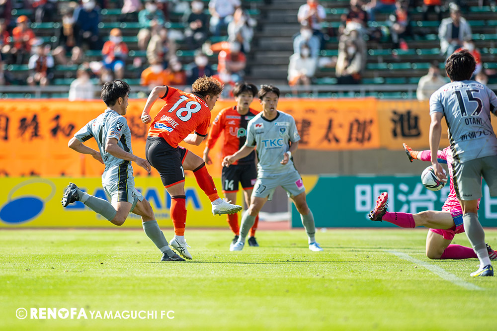 あの時間帯での失点は気持ちが折れるものはありますが、コーナーを取れたのは誰も諦めていないという証拠だと思います。引き分けに終わっていたら後味が悪くなっていたと思いますが、ここでもう一度、レノファを応援するみんなで戦いたいという気持ちがあって、そういうジェスチャーをしました。僕らも勇気とパワーをもらいましたし、それが決勝点につながったと思います。本当にサポーターのみなさんに感謝しています。ホームは絶対に勝ちたいと思っていますので、情けない試合はできないですし、より多くのみなさんと勝って維新でヤマグチ一番を踊りたいと思います。