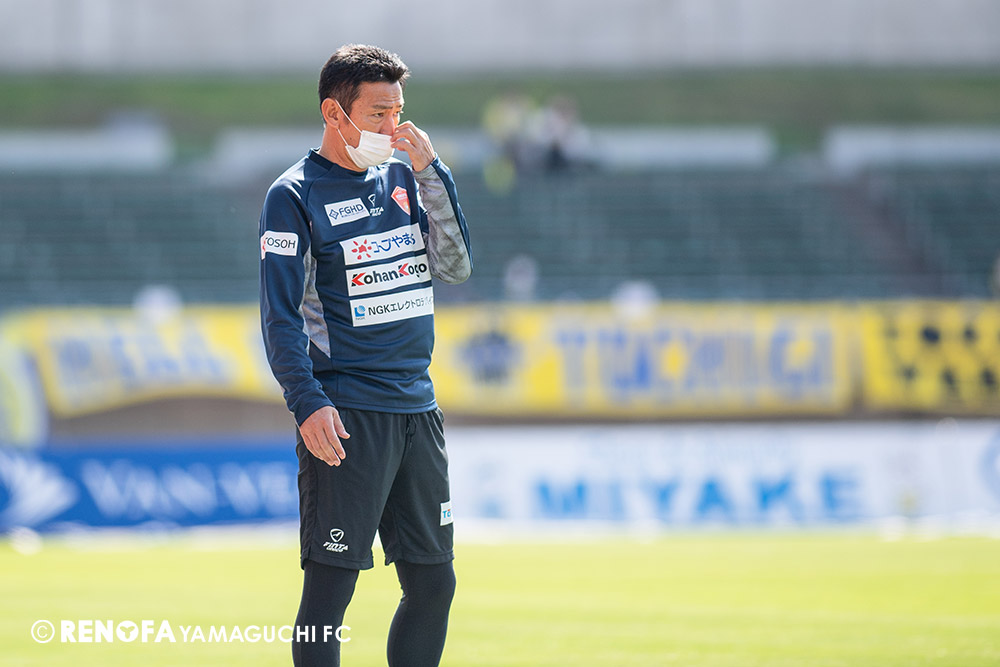 立ち上がりもそうですが、終了間際の時間帯もお互いにゴールが生まれる確率が高く、ゴールされる確率が高いというのも統計的にも出ていると思いますが、甘さが出ている部分ですので、クロスに対してもスライディングに行かないとか、そういうところは突き詰めて厳しくやっていかないと治らないと思います。ただ、レノファのサッカーは点を取るサッカーではありますが、結果は1-0でもレノファのサッカーだと思っています。ただ、姿勢というところでは最後まで諦めない。前に矢印を向ける。そういうところがレノファのサッカーだと思っています。結果も大事ですが、やっている姿も見ていただければと思います。