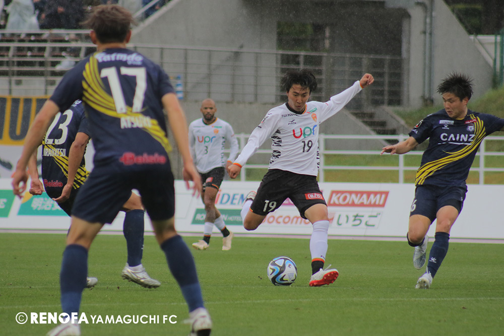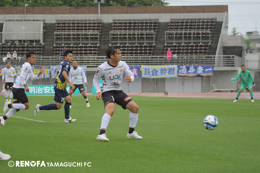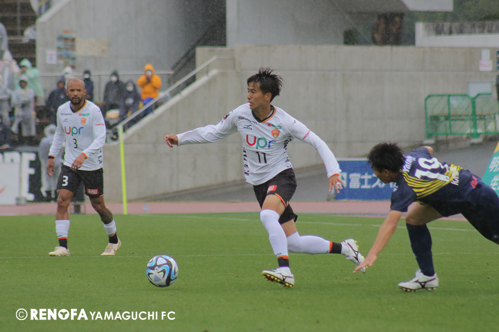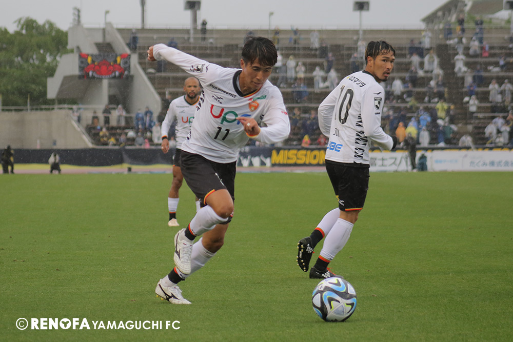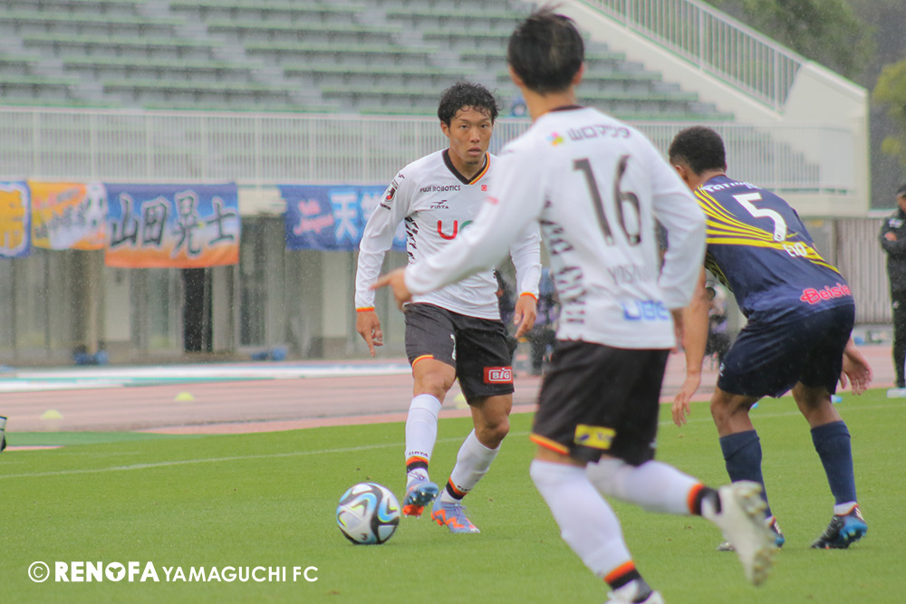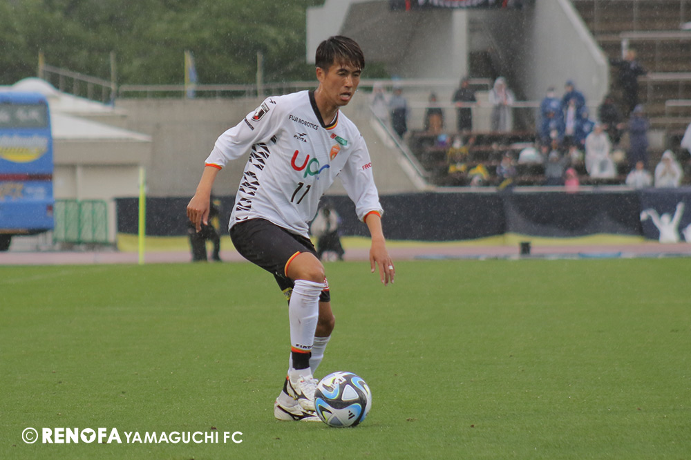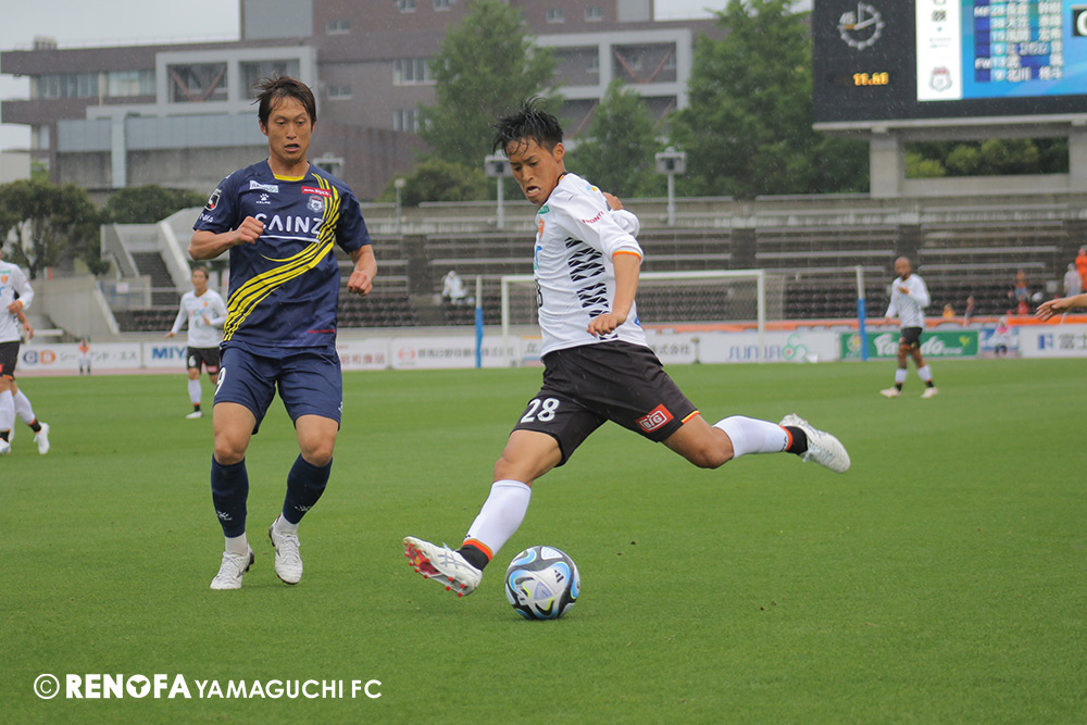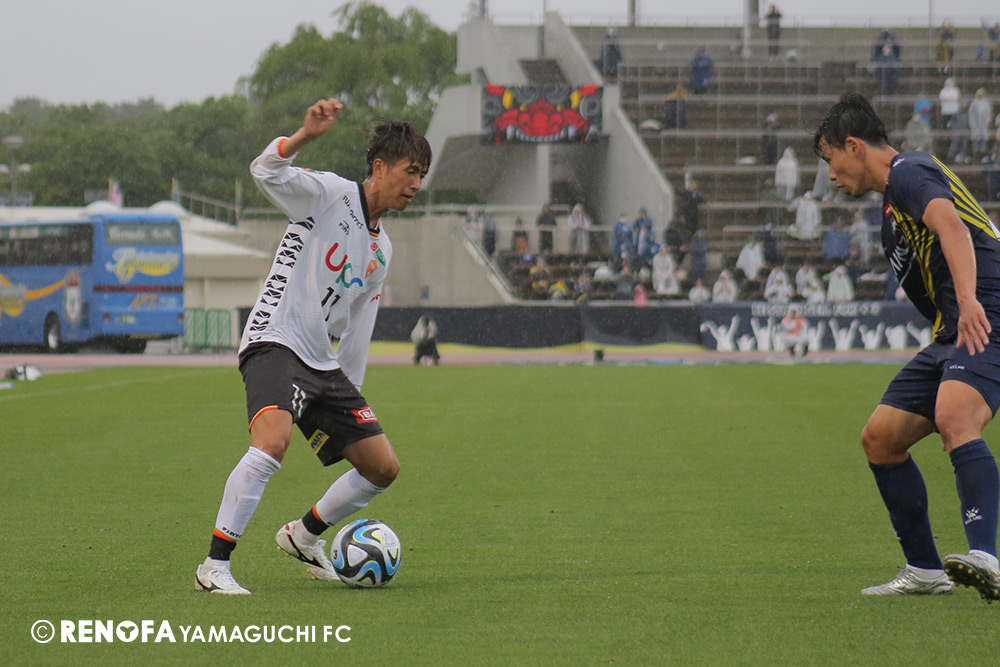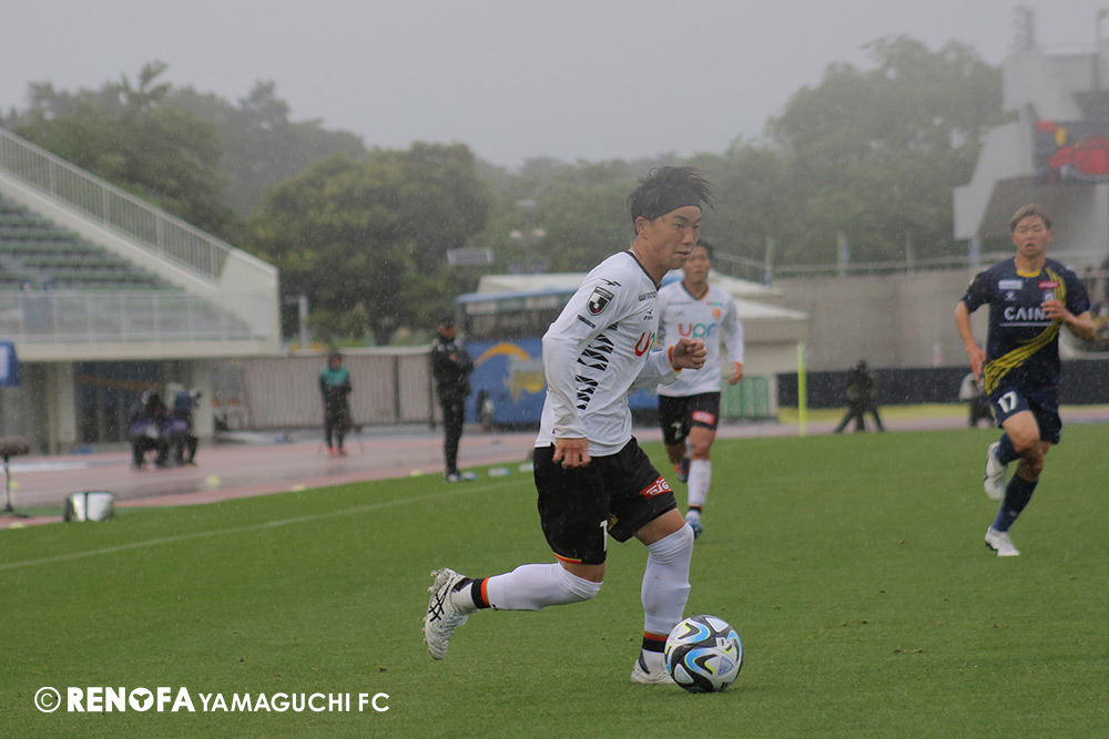 シンヤくん(矢島慎也選手)からすごく良い縦パスが入って、前を向けというようなメッセージ性のあるパスだったので、前を向いて、トラップは少し流れましたが、打とうと思って打ったら入りました。正直、入るかは分からなかったですが、シュートは打とうと思っていました。前半からシュートを打てとは言われていましたし、あの場面は相手に当たりましたが、良いところに行ってくれて良かったです。