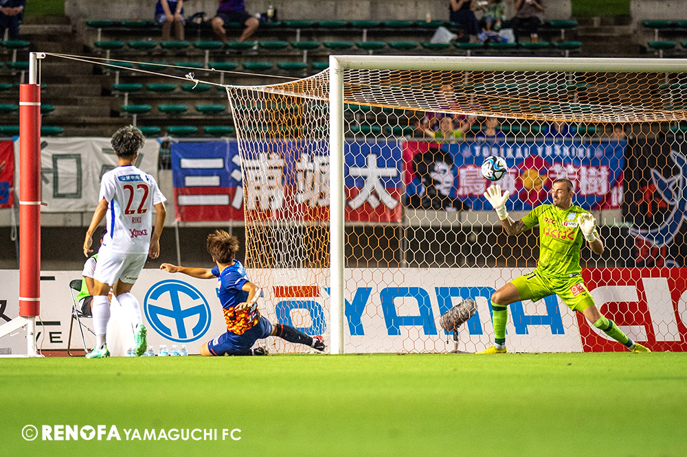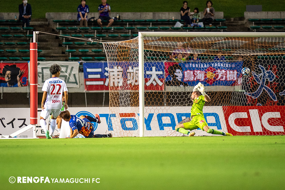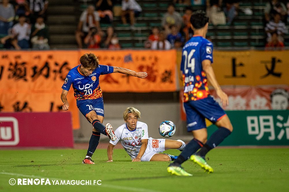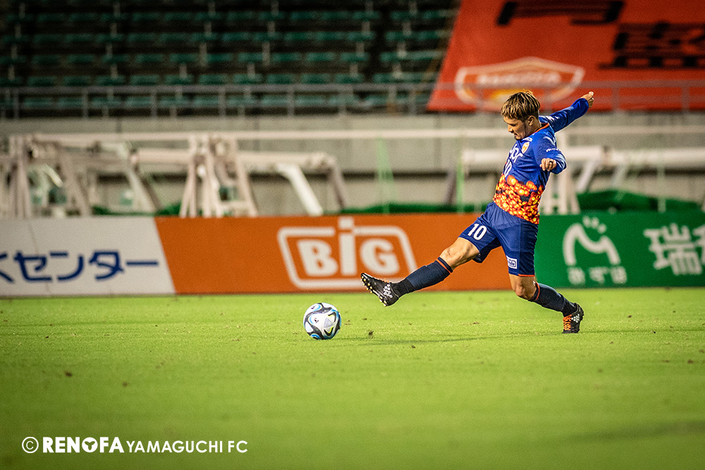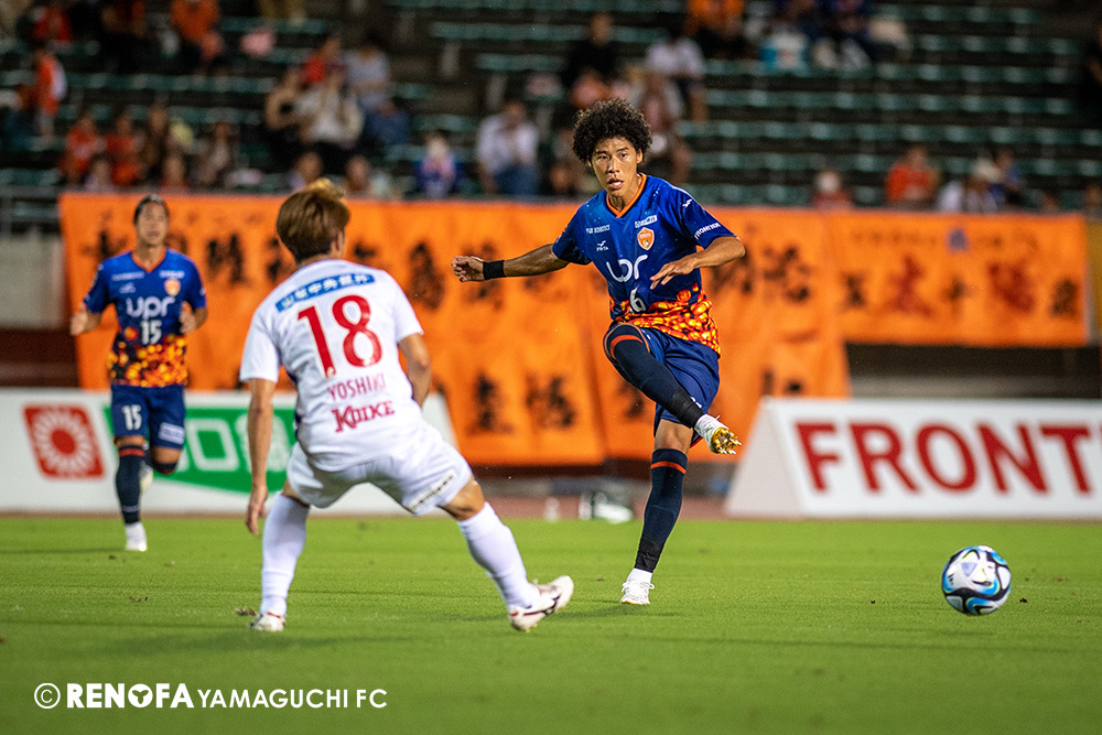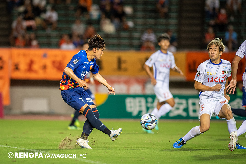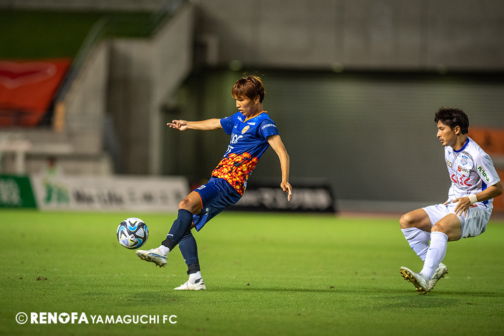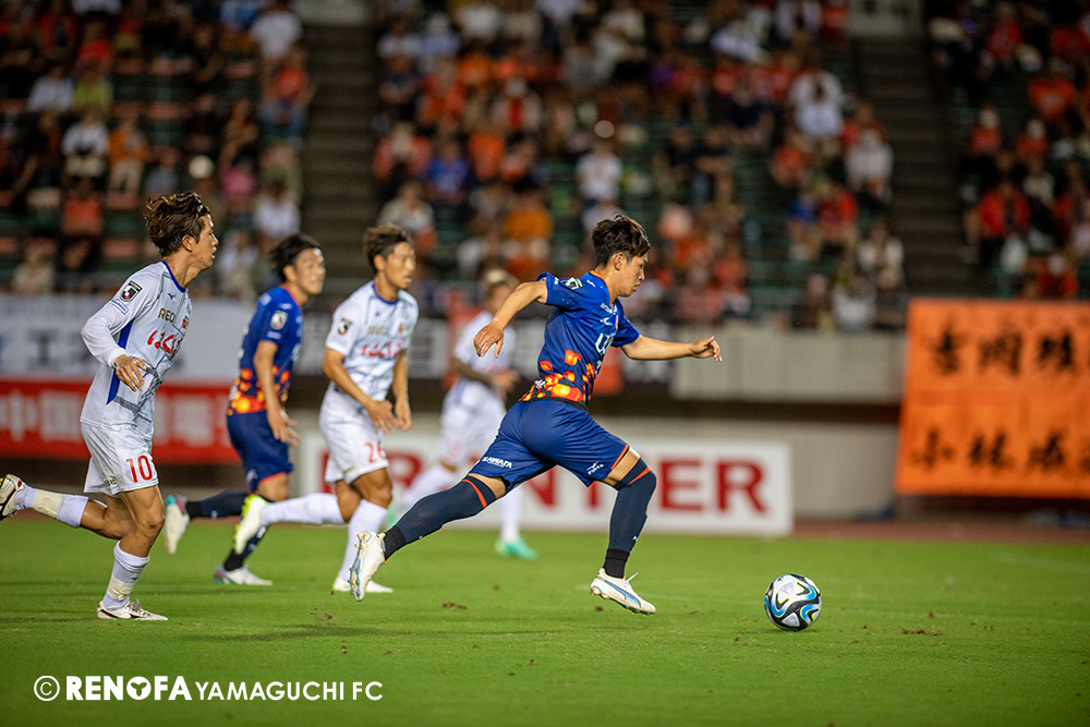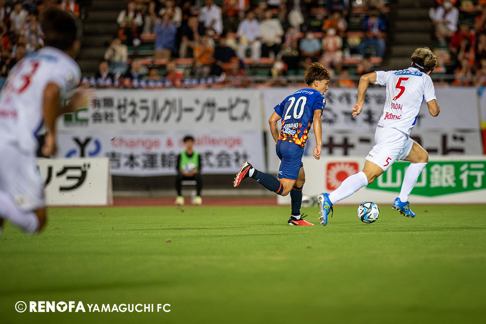 シンヤくんからダイレクトに出てくると信じて斜めに走っていました。徳島戦でも太陽(五十嵐太陽選手)から斜めのパスが来て、相手に簡単に当ててしまって枠外に飛んだシュートシーンがありました。少しゆとりを持って切り返すことで、ゴールにつながる確率は高まると思いますので、前節の反省を生かしたシーンではありましたが、結局ゴールが決まらなかったので、仕留められるように日々練習からやっていきます。