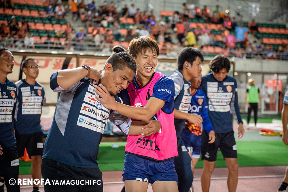 それがガッツポーズに現れましたし、ケイポーズもしました。自分と同じ名前のコウタくんが白血病で闘病生活しているということで、すごくレノファを応援してくれている子なので、そういう子がいるということと、レノファが苦しい状況でもスタジアムに足を運んでくれるサポーターの方々がいるということ、応援してくれている方々に良い報告ができるようにと思って選手全員がやっていますので、そういうポーズもできて良かったです。