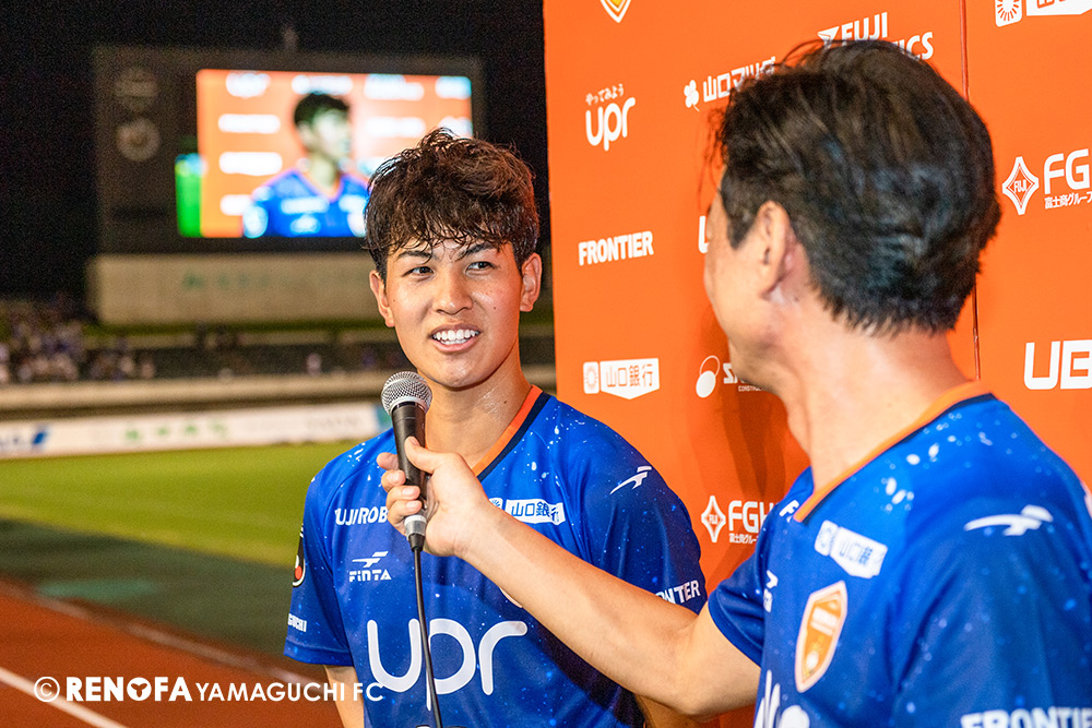 試合前から、開始10分で絶対に自分のところにチャンスが来ると思って、強い気持ちで試合に入っていました。得点シーンに関しては(沼田)圭悟くんとのアイコンタクトが合ったので、絶対にニアに来ると思って走り込みました。あとは当てるだけという感じでしたので、圭悟くんにも感謝したいです。