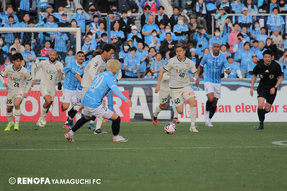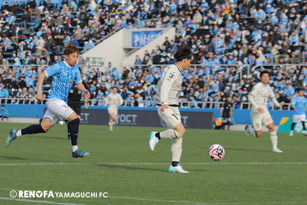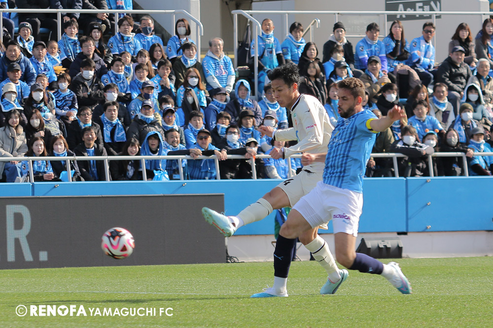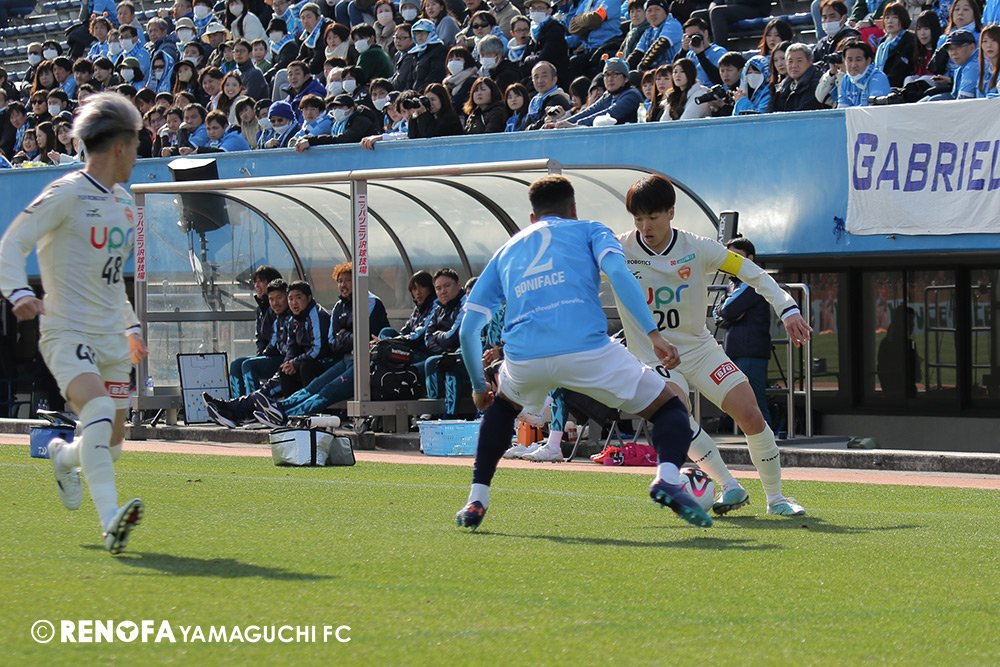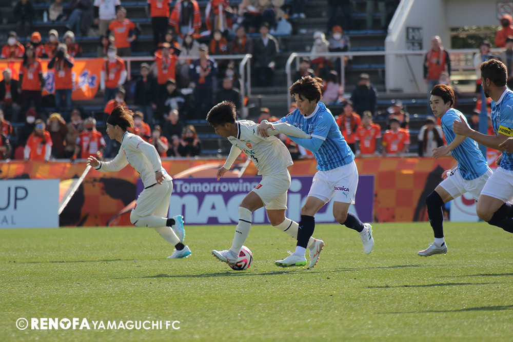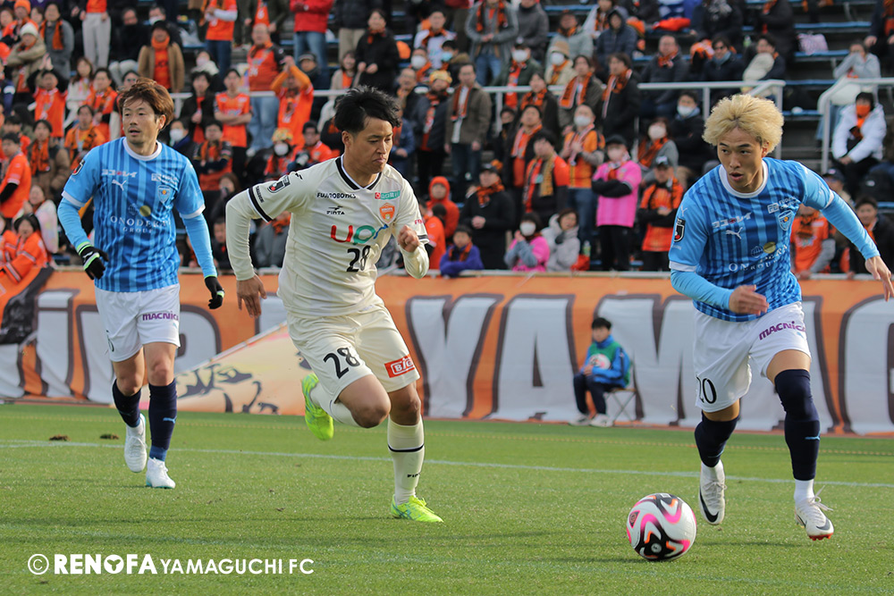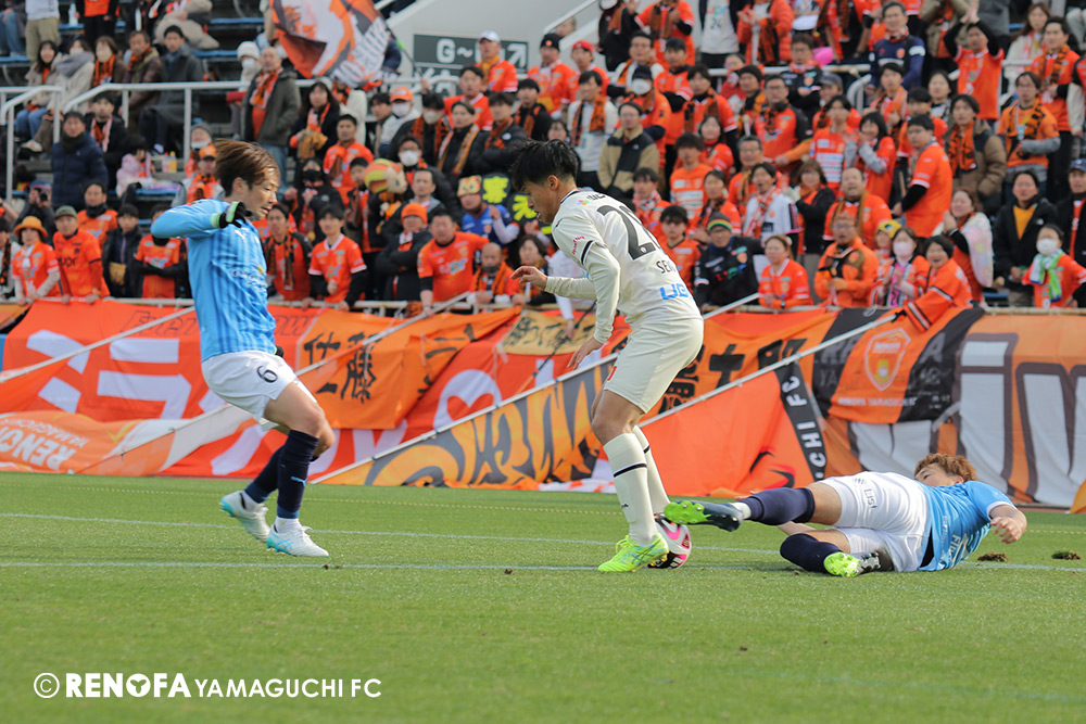 山口から多くのサポーターが詰めかけていただいて、我々をサポートしていただきました。数では横浜FCさんが上回っていたとは思いますが、声の大きさ、声援が我々の大きな後押しになりました。ありがとうございました。