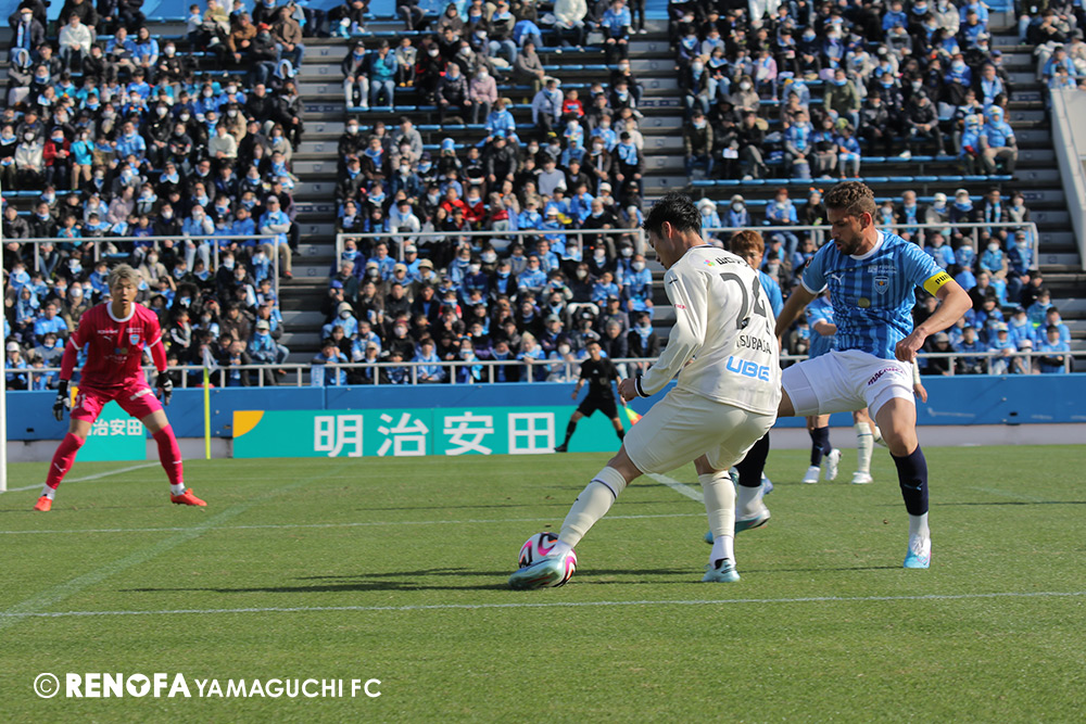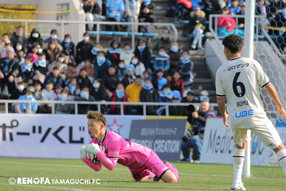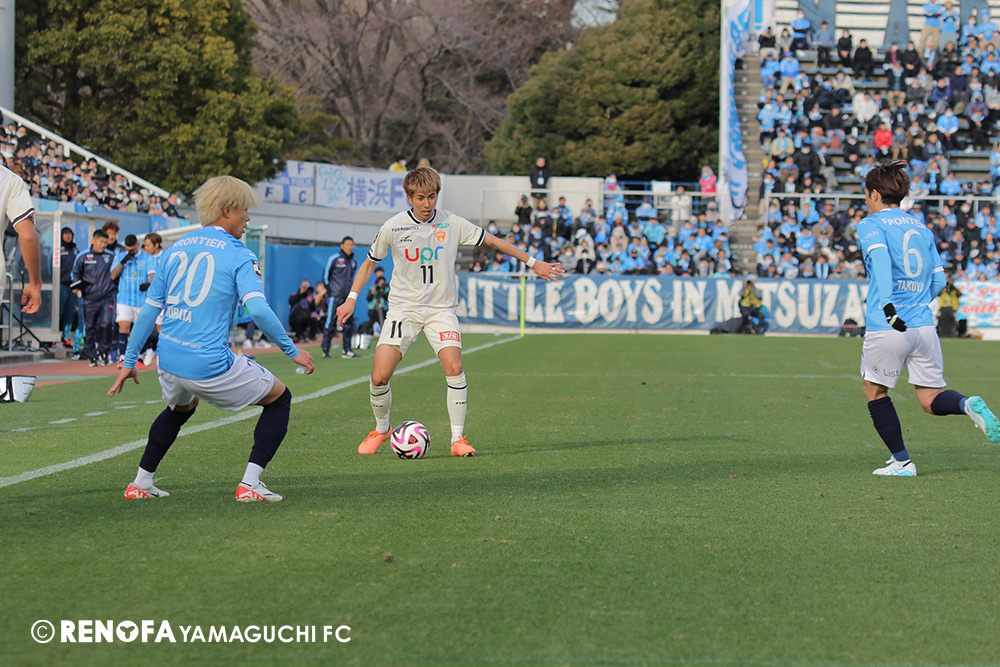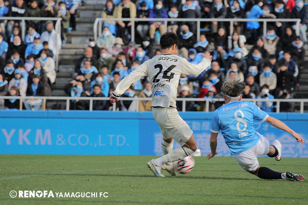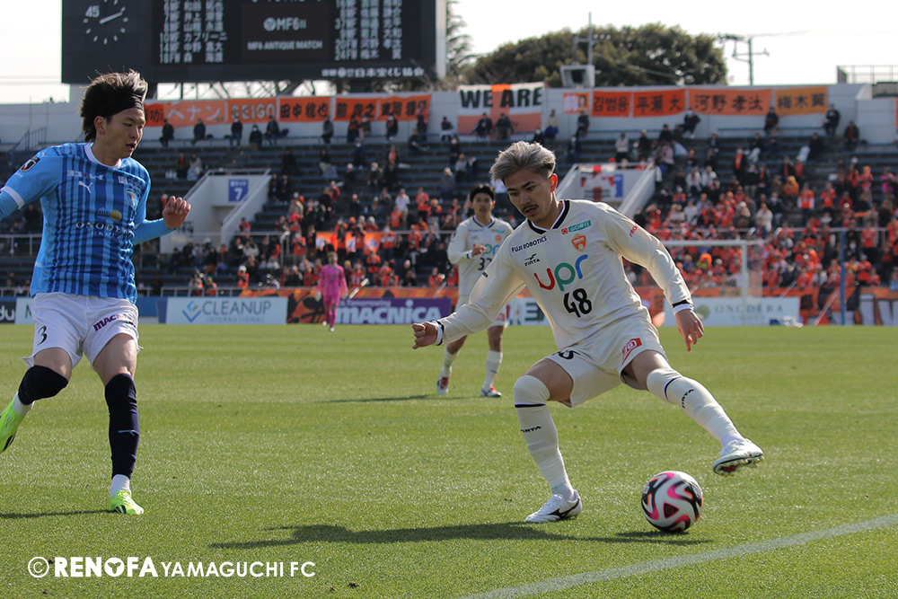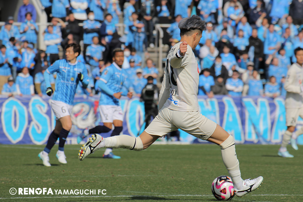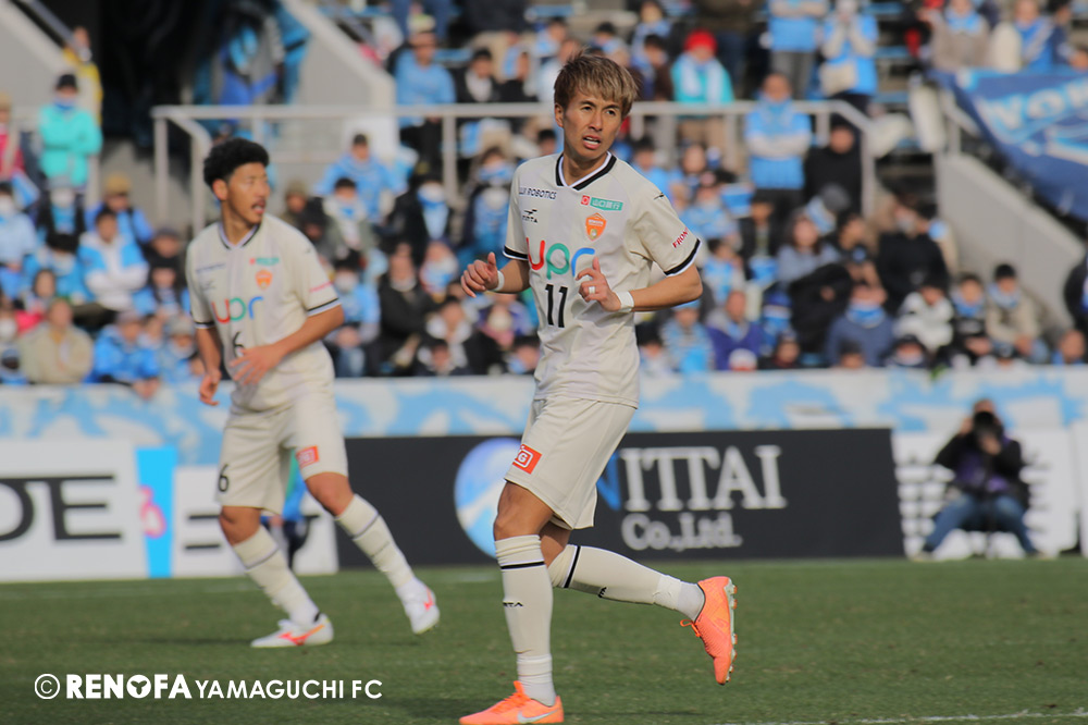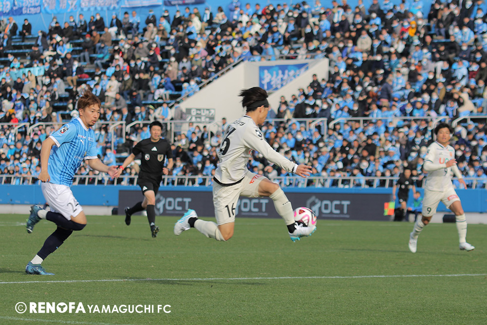 山口から多くのサポーターが詰めかけていただいて、我々をサポートしていただきました。数では横浜FCさんが上回っていたとは思いますが、声の大きさ、声援が我々の大きな後押しになりました。ありがとうございました。