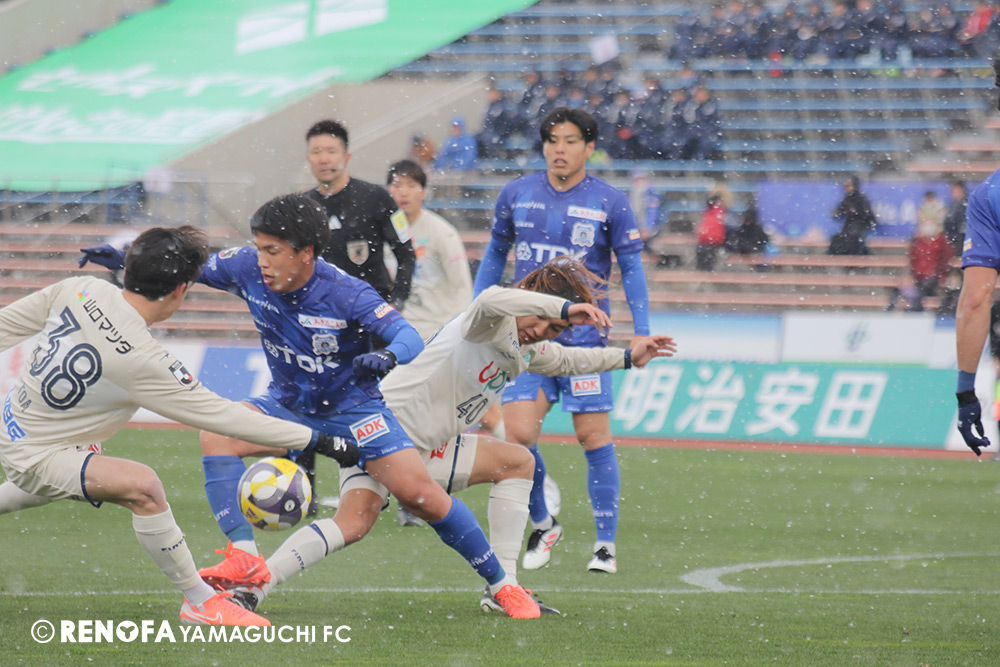 観衆 3,323人 天候 曇一時雪時々晴 気温 5.8度 湿度 42% 主審:榎本 一慶 副審:松井 健太郎/清水 拓 四審:原田 雅士