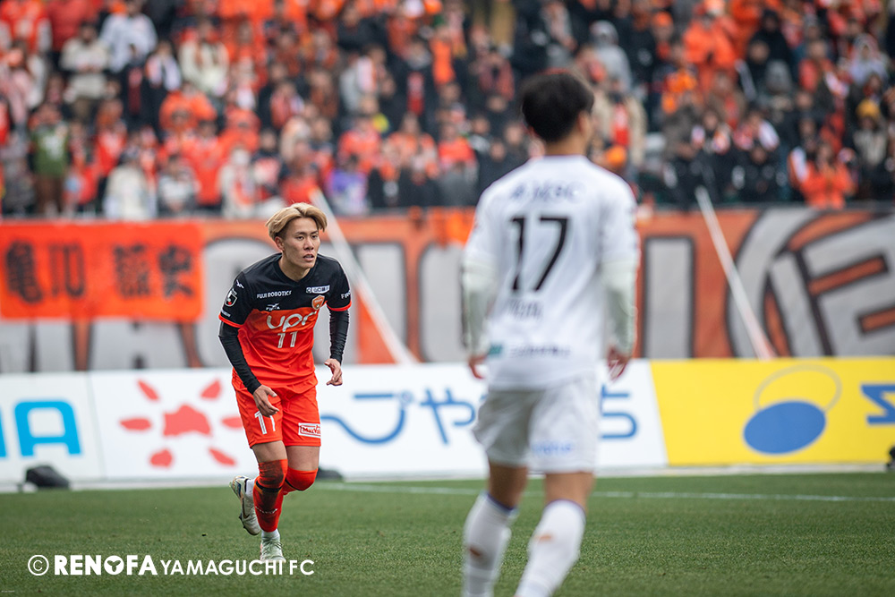 クロスからのシュートはあまりなかったのでそこは山口に来てから意識していました。(得点の場面では)強いシュートというよりはコースを狙って、枠をとらえる感じで狙いました。