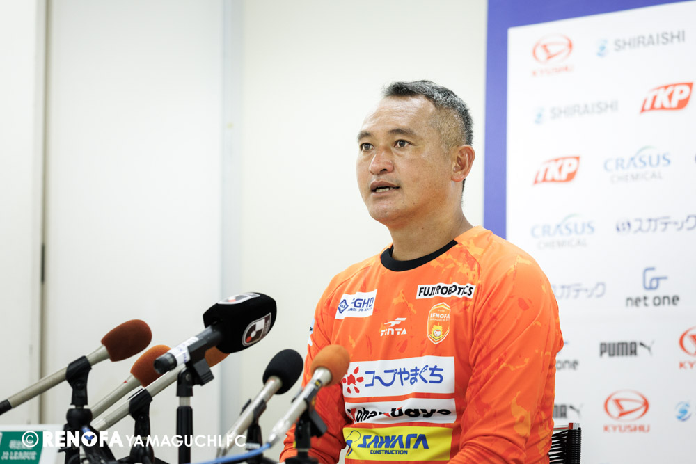 今日は千人近くの方々にレノファサポーターに来ていただいて声援していただきましたが、勝点を取ることができず、申し訳ない気持ちです。今日は自分たちに勝ちに値するだけのパフォーマンスがあったかといえば、苦しい展開であったと思います。相手のブロックを崩すまでに至らなかった。最後はゴールに向かうプレーはしましたが、追いつくまでの時間はなかったという印象です。