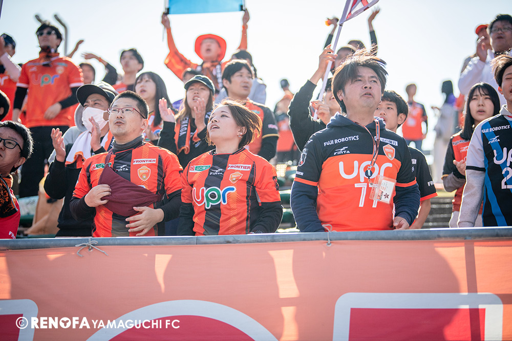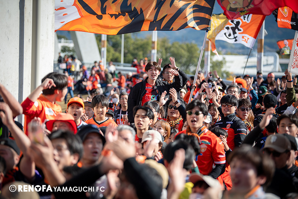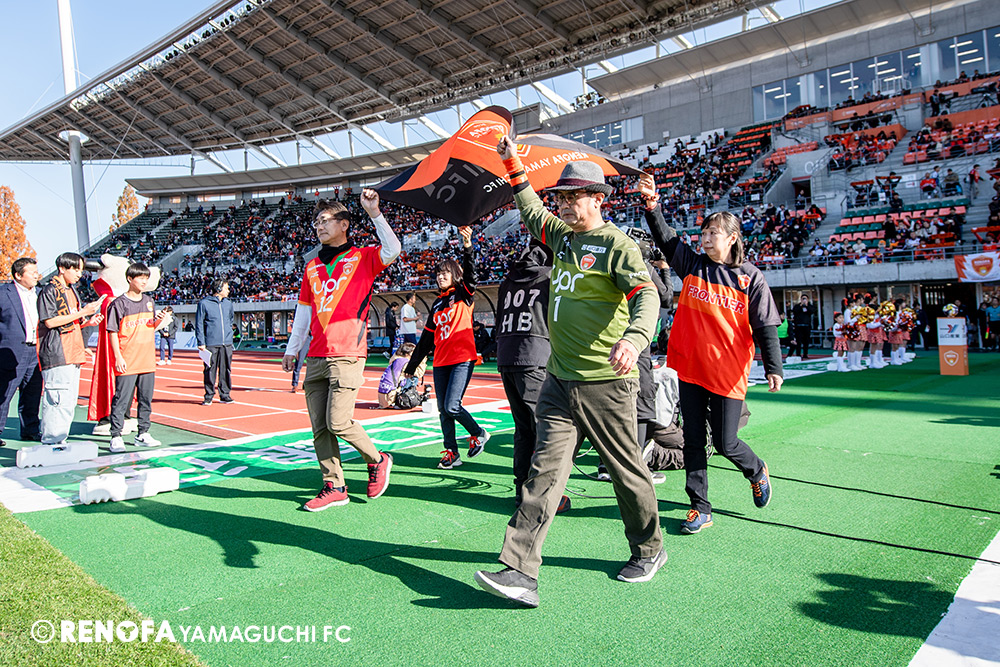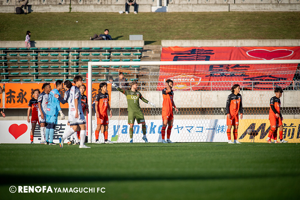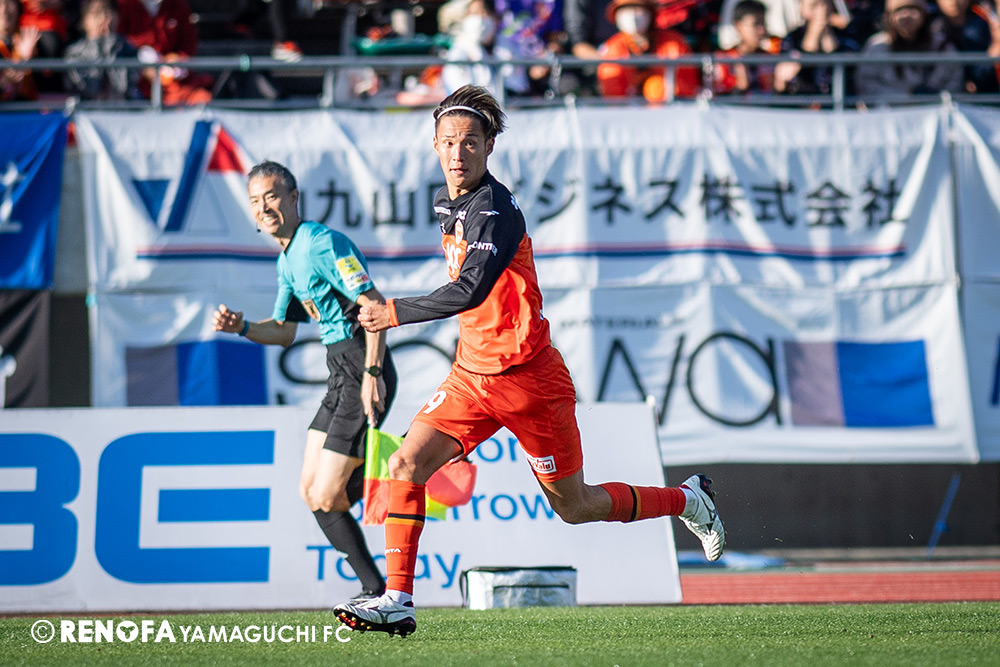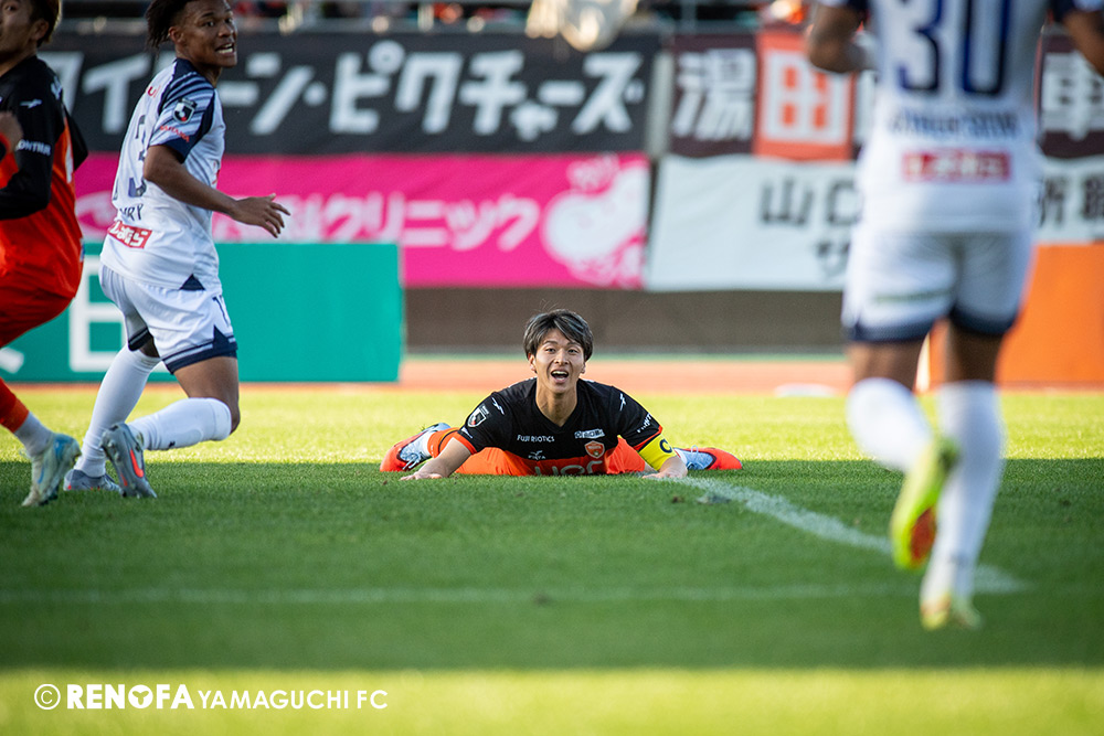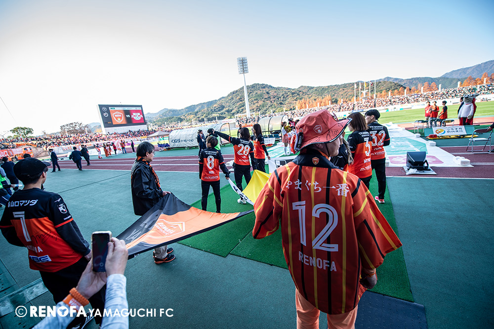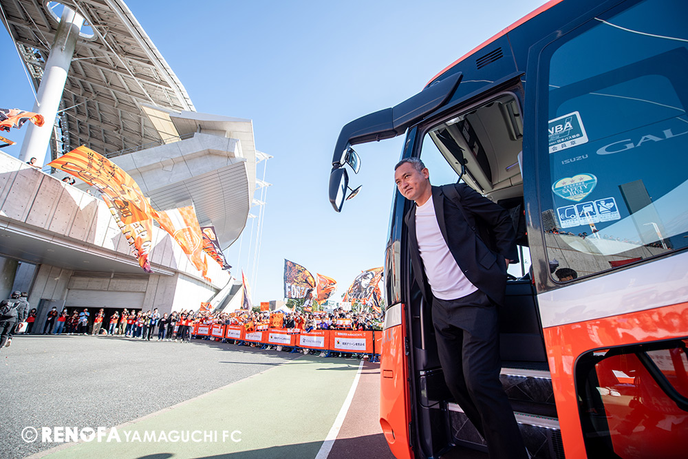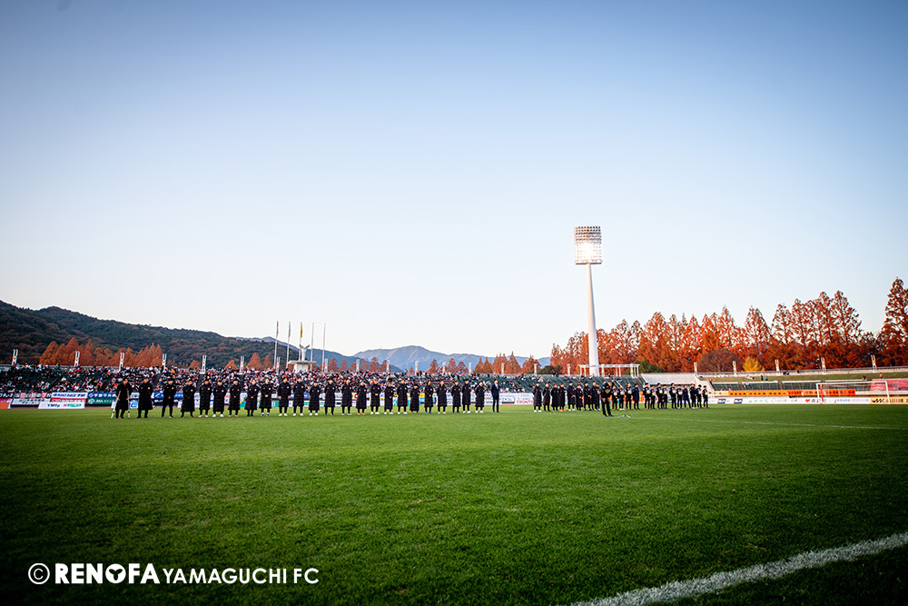 山口国体(2011年)のときに宮成さん(故 宮成隆元GM)が「一緒に山口で戦ってくれないか」と言ってくれたところからスタートして、本当にたくさんの方々に関わっていただきました。プロサッカーチームが地元にあることを目標に帰ってきて、実現できて、最終戦にもこうしてたくさんのサポーターが来ていただいた姿を、宮成さんと一緒に見ることができたら最高だったと思います。ただ、こういうこと(降格)もプロスポーツの世界ですので、今日来てくれたサポーターがいろいろな思いを感じてくれたと思います。その思いがプロサッカーチームのある意義だと思いますので、このレノファが夢、感動、元気を本当に届け続けられる存在であるようまた前進していければと思います。