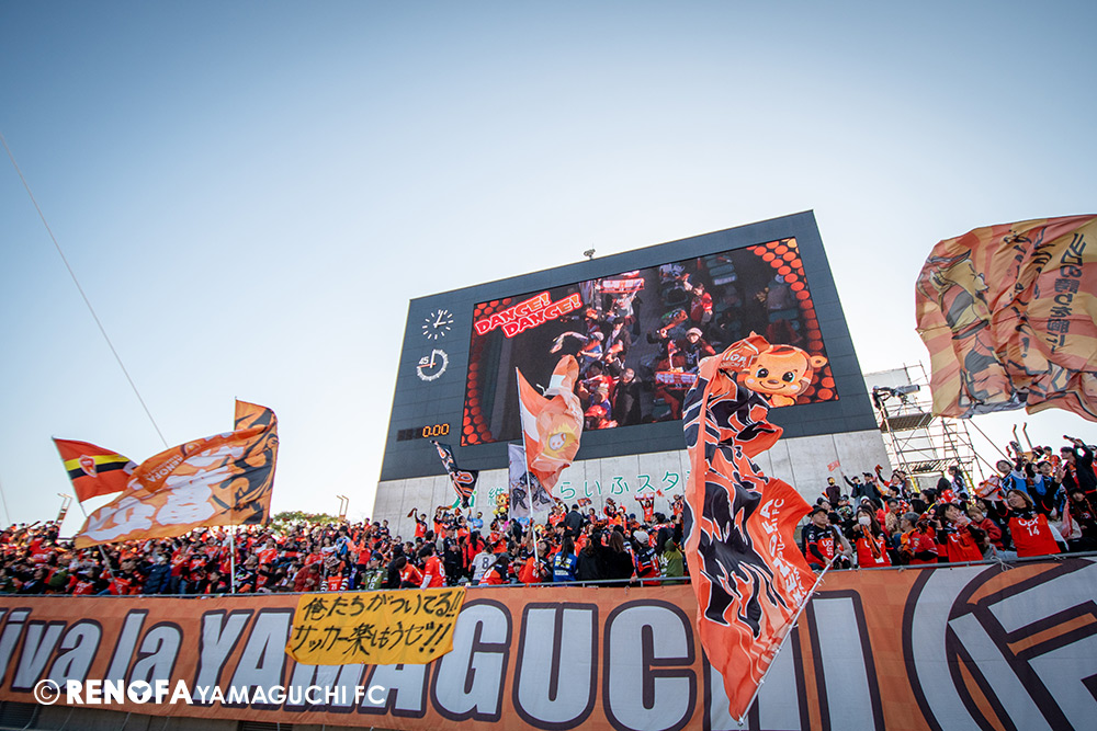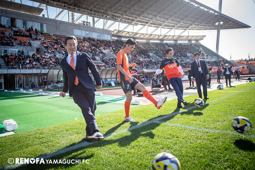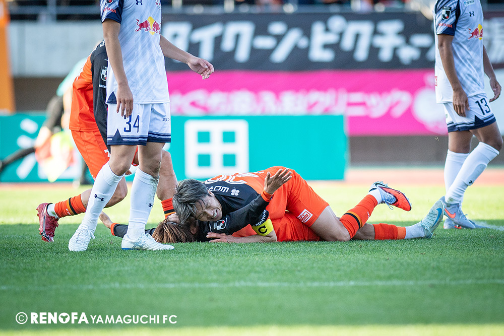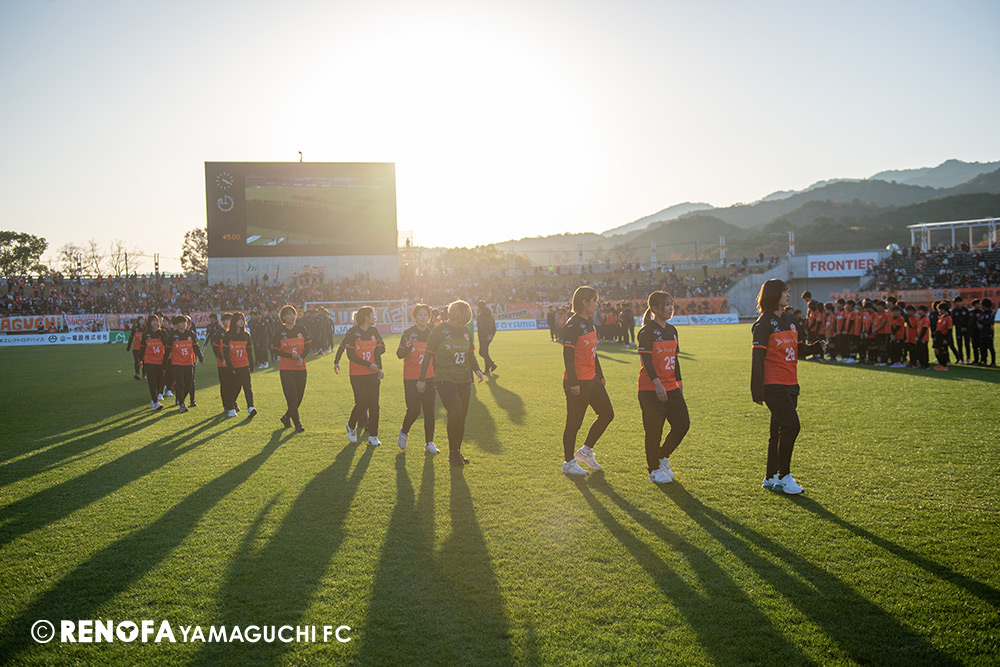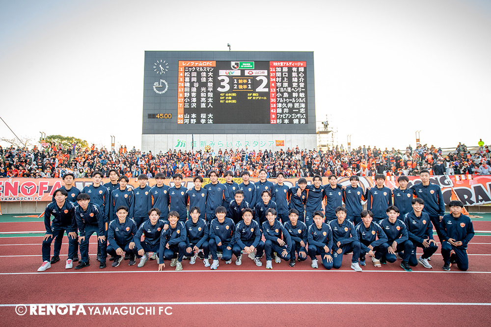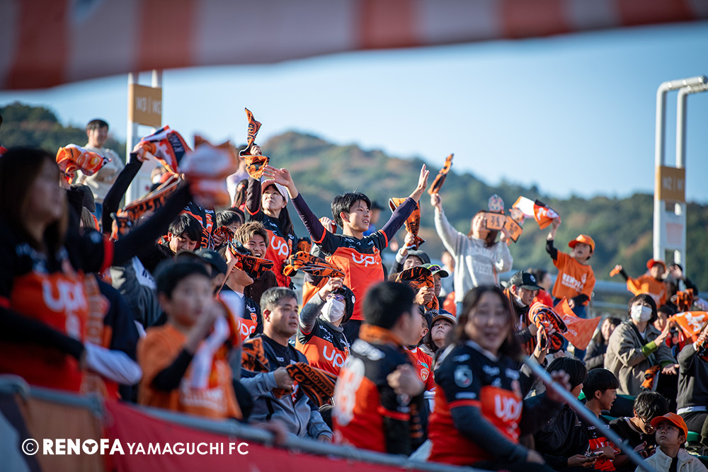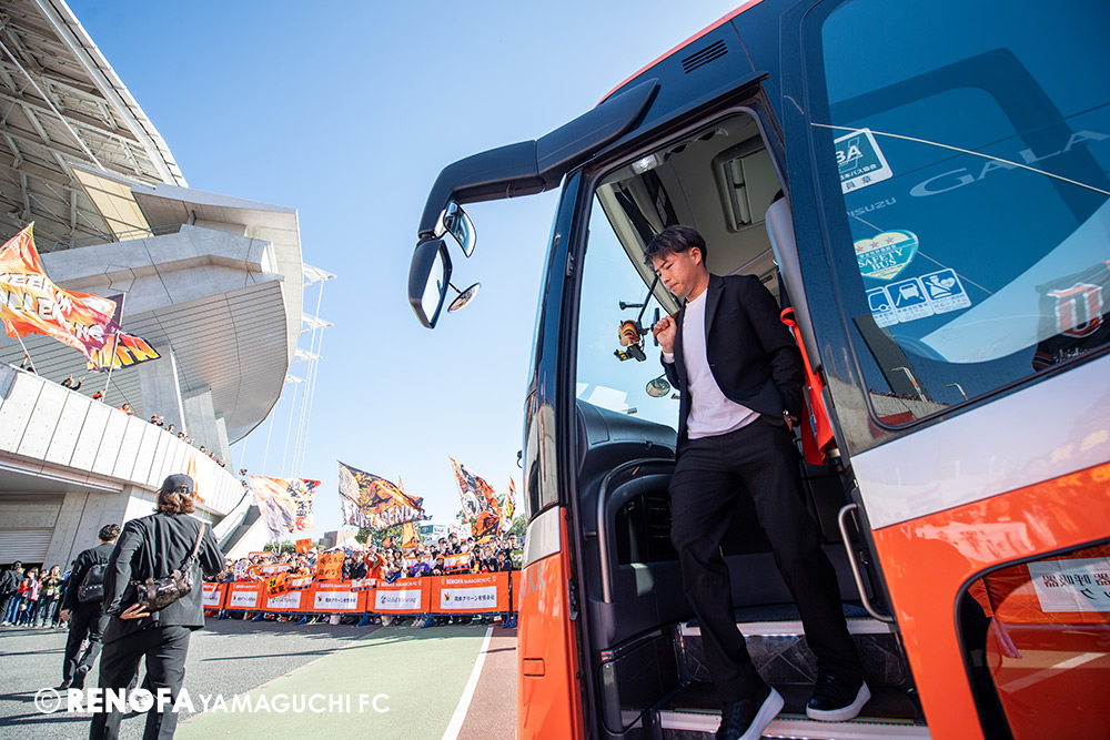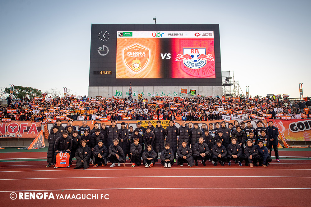 山口国体(2011年)のときに宮成さん(故 宮成隆元GM)が「一緒に山口で戦ってくれないか」と言ってくれたところからスタートして、本当にたくさんの方々に関わっていただきました。プロサッカーチームが地元にあることを目標に帰ってきて、実現できて、最終戦にもこうしてたくさんのサポーターが来ていただいた姿を、宮成さんと一緒に見ることができたら最高だったと思います。ただ、こういうこと(降格)もプロスポーツの世界ですので、今日来てくれたサポーターがいろいろな思いを感じてくれたと思います。その思いがプロサッカーチームのある意義だと思いますので、このレノファが夢、感動、元気を本当に届け続けられる存在であるようまた前進していければと思います。