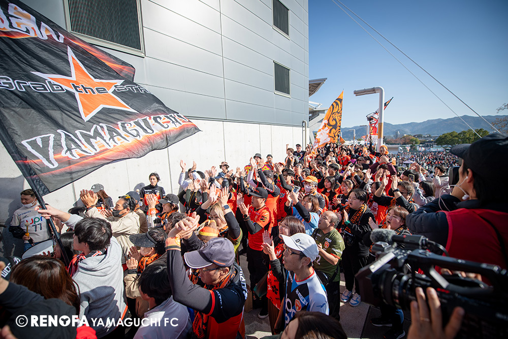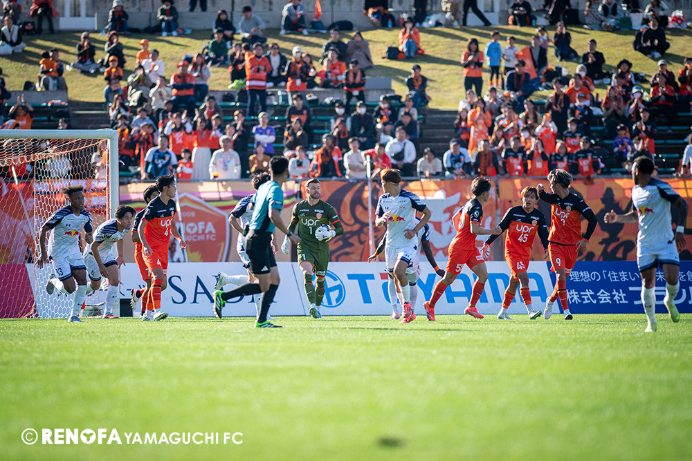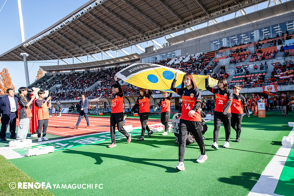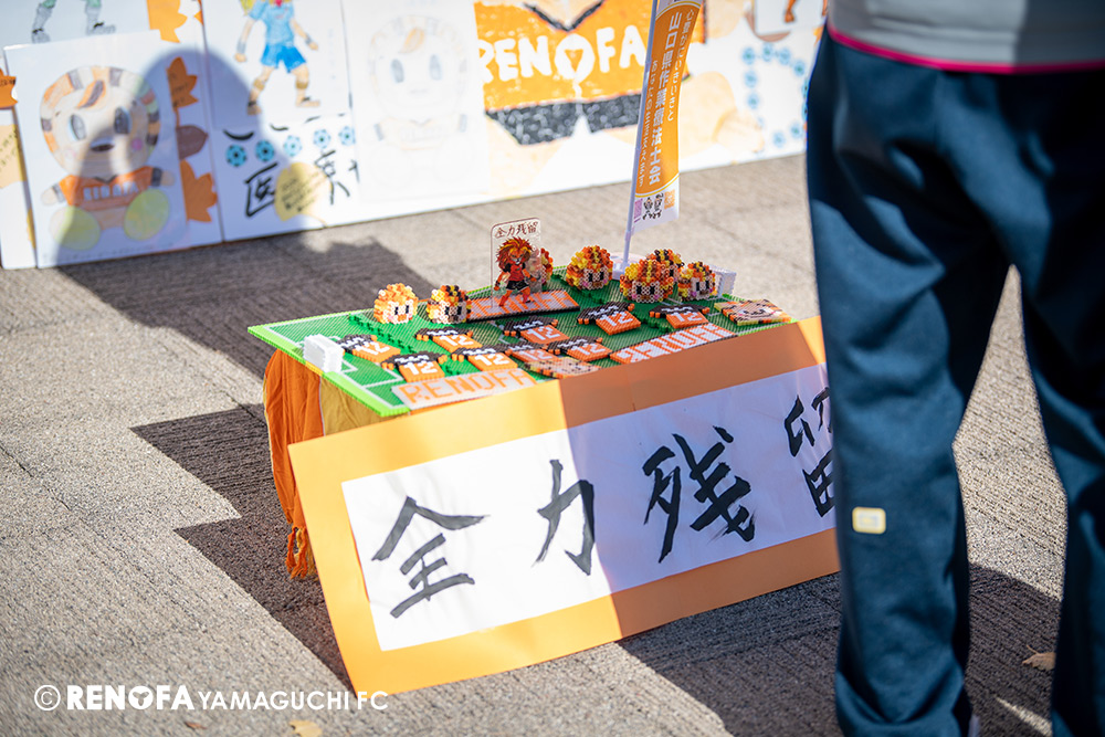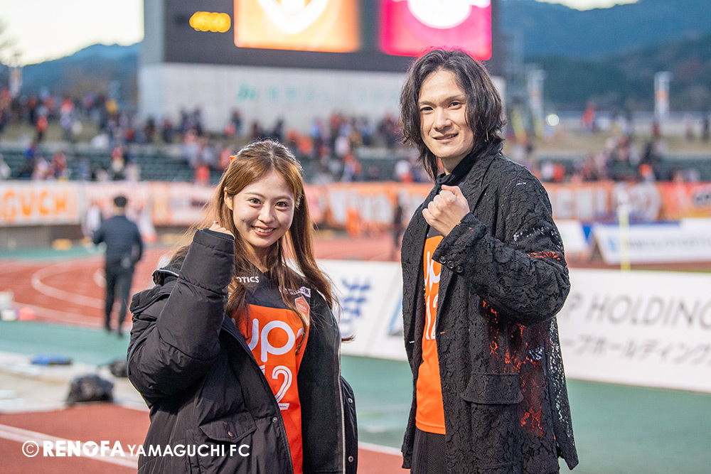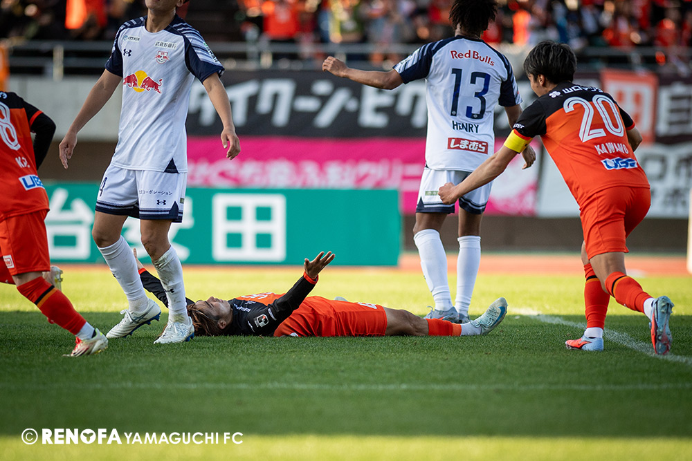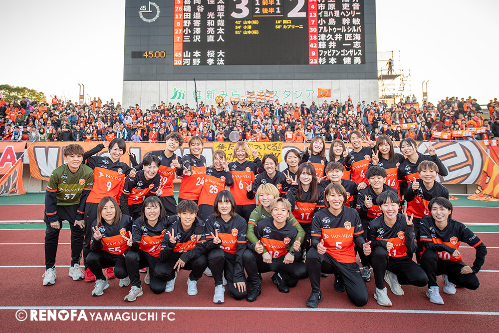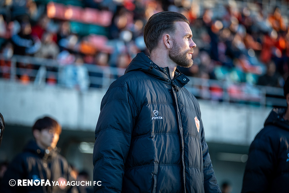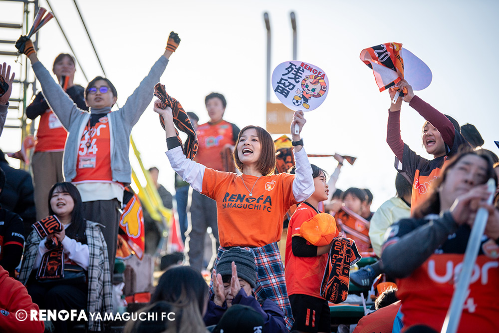 山口国体(2011年)のときに宮成さん(故 宮成隆元GM)が「一緒に山口で戦ってくれないか」と言ってくれたところからスタートして、本当にたくさんの方々に関わっていただきました。プロサッカーチームが地元にあることを目標に帰ってきて、実現できて、最終戦にもこうしてたくさんのサポーターが来ていただいた姿を、宮成さんと一緒に見ることができたら最高だったと思います。ただ、こういうこと(降格)もプロスポーツの世界ですので、今日来てくれたサポーターがいろいろな思いを感じてくれたと思います。その思いがプロサッカーチームのある意義だと思いますので、このレノファが夢、感動、元気を本当に届け続けられる存在であるようまた前進していければと思います。