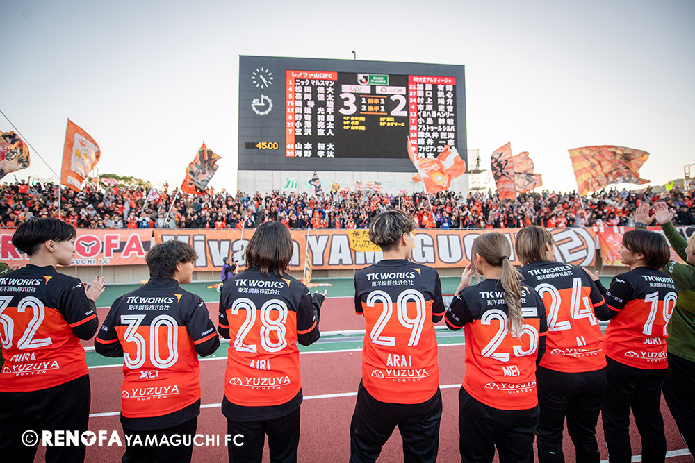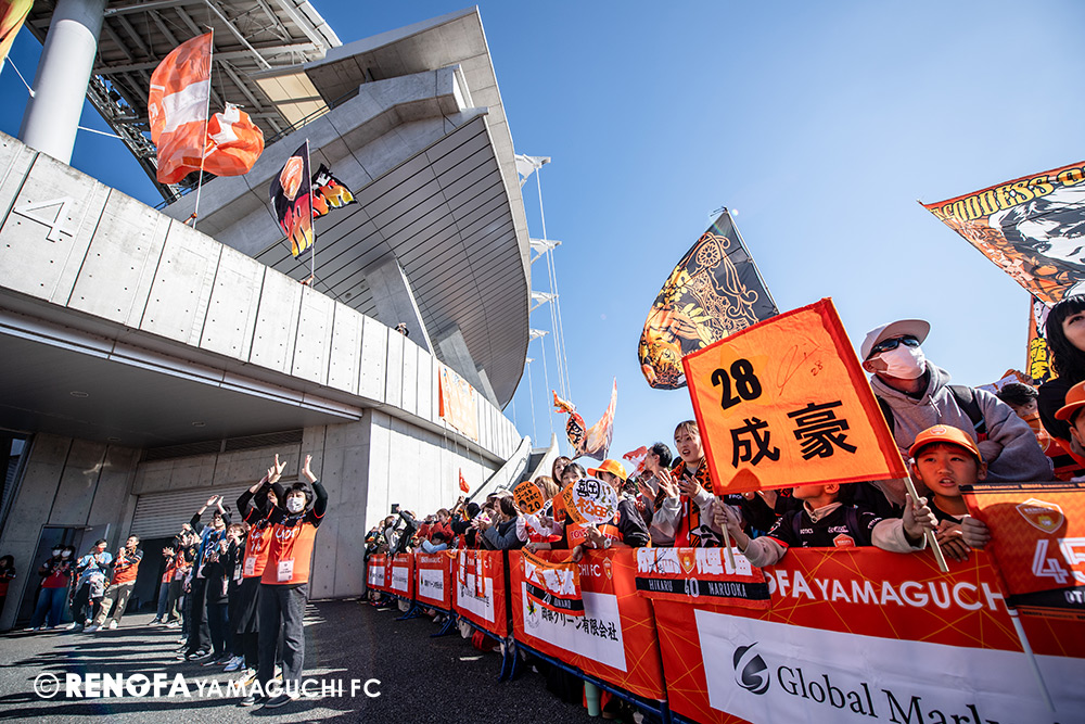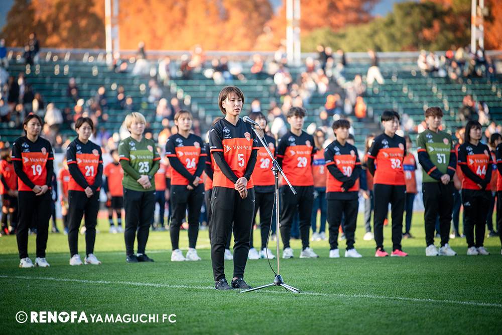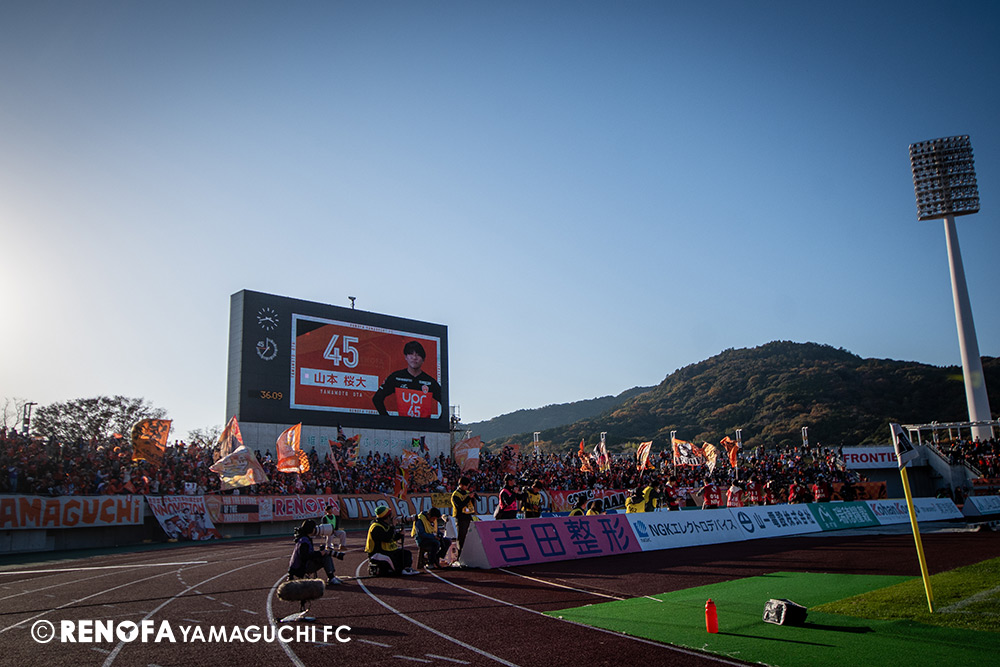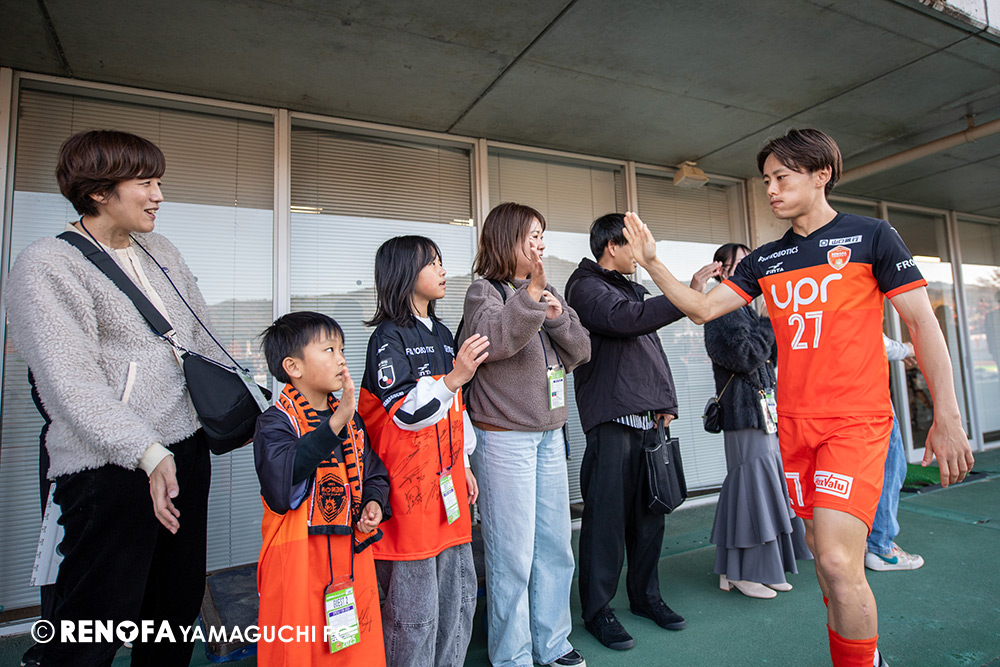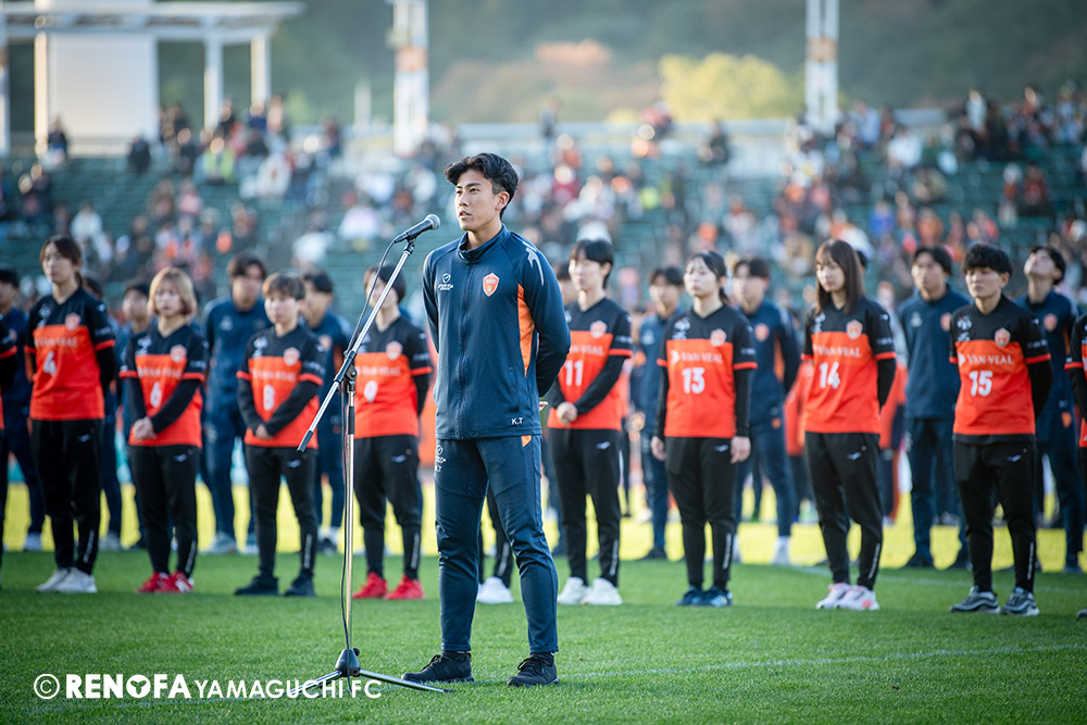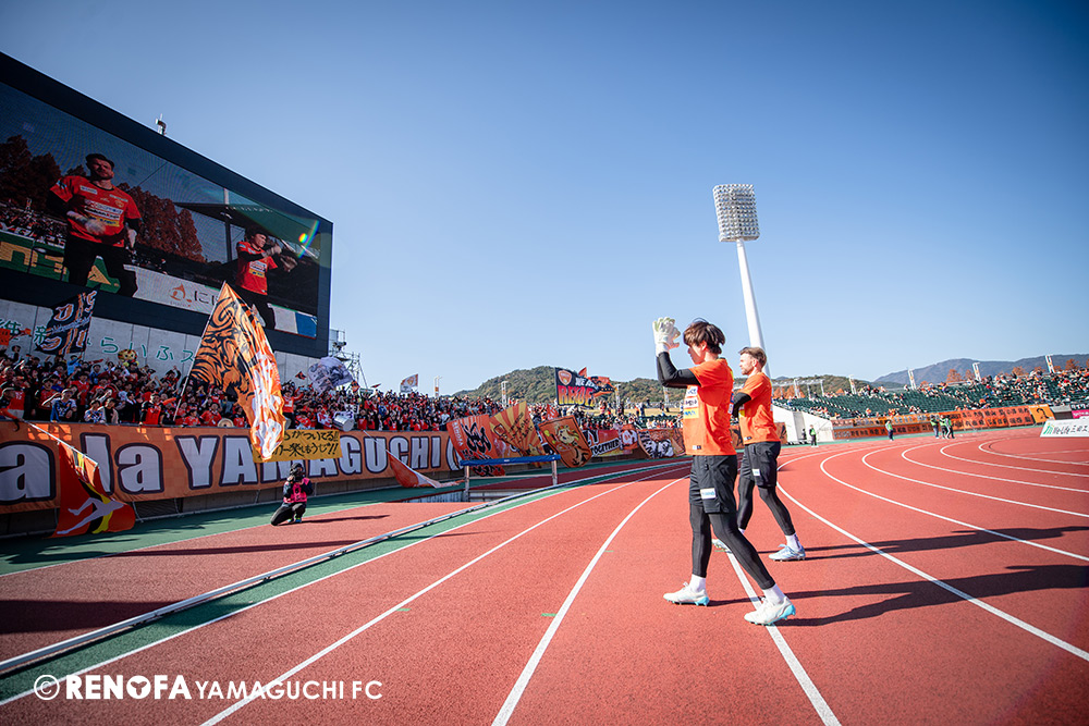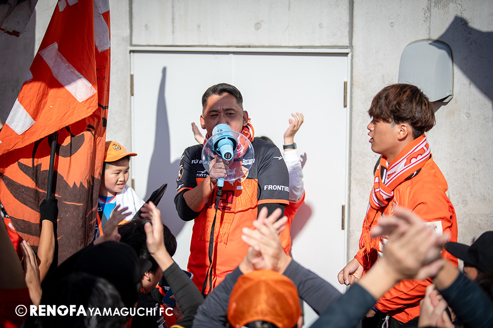 地域リーグからレノファに関わらせてもらい、こうしてプロサッカーチームとなってJの舞台で戦えていることが本当にすごいことだと思っています。今日もたくさんの方に足を運んでもらえて、こういう状況でも変わらず声援を送ってくれる。声を掛けてくれる。また来年頑張ろうと言ってくれる。本当にそういうクラブになったと実感しています。その皆さんの思いにもっともっと応えられるよう、レノファはもっと強固にならないといけないですし、地域にもっともっと愛されて、もっともっとクラブとして前進していけるようにしなければいけないと思いまうす。