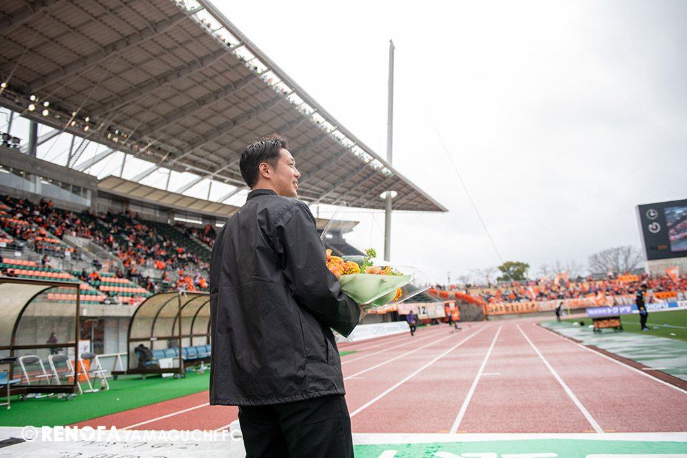 今季初めての勝点3が取れました。レノファ山口FCに関わるすべての皆様に捧げる勝点3としたいと思います。本当にありがとうございました。
