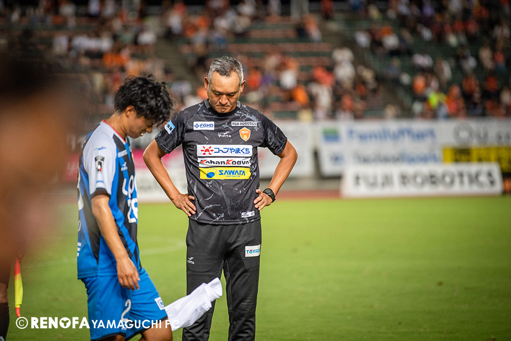 3-4-3に変える判断をするのが自分が遅かったせいで失点したことは自分の力不足だと思っています。ただ、3-4-3に変えてからは選手たちはあの状況を跳ね返す力を発揮してくれて、選手の特徴を活かしてゴールに迫るシーンは作ってくれたと思います。三沢(直人)選手はゲームをコントロールできることと、峰田(祐哉)選手の高さ、(アレフ)フィルミーノ選手の高さと合わせて圧力を掛けることも良かったです。そこでチャンスになるというところもありました。小林(成豪)選手、宮吉(拓実)選手もやはり短い時間でもパワーを出して必ずチャンスメイクしてくれる。そういう意味では代わって入った5人の選手たちが苦しい状況を変えてくれたと思います。