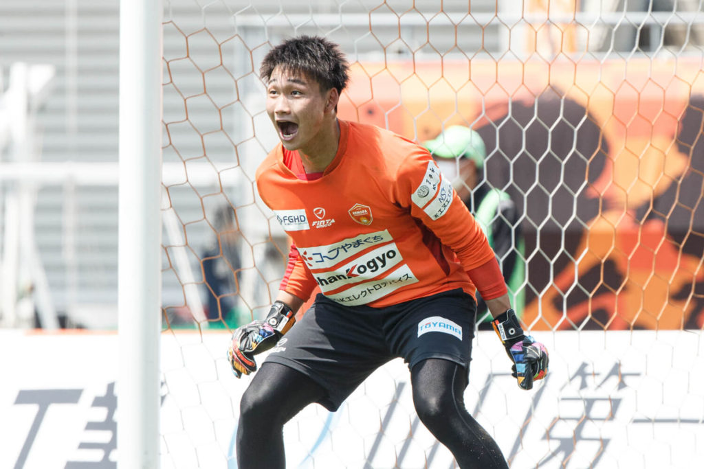 GKの藤嶋栄介選手は今年はファーストチョイスではありませんが、リザーブメンバーに選ばれる機会が多く、第8節のファジアーノ岡山戦では早い時間に退場となった先発GKに代わって出場。0-1の敗戦に終わったものの、確実にロースコアの展開に持ち込んでいます。
