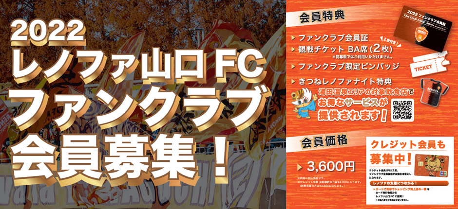 ファンクラブ会員証、観戦チケット BA席2枚(開幕戦以外で利用可)、ファンクラブ限定ピンバッジ、きつねレノファナイト特典