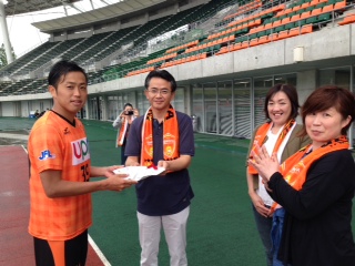 6月7日(土)、vs.ホンダロックの試合後、レノファ山口のパートナー企業の明治安田生命様より、明治安田生命様のキャラクターである「うさりん」と「かめろん」のおまもりを頂戴しました。 また、試合終了後、撤収のボランティアにもご参加いただきました! 明治安田生命様ありがとうございました!