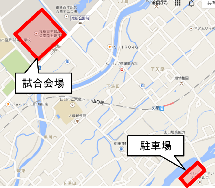 ※山口線矢原駅より徒歩10分、防長バス「競技場前」すぐ