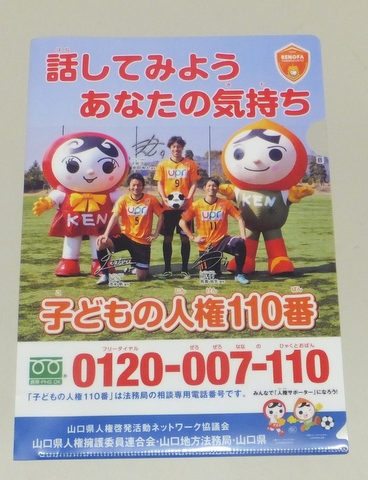 1500名様に、レノファと山口県人権啓発活動ネットワーク協議会(山口県人権擁護委員連合会・山口地方法務局・山口県)がコラボした特製クリアファイルと、しおりをプレゼントします!