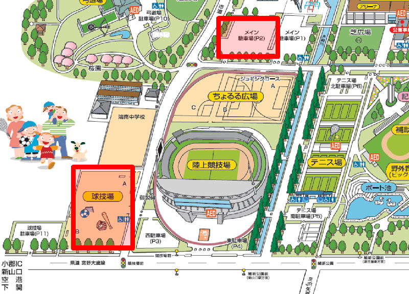 ※山口線矢原駅より徒歩10分、防長バス「競技場前」すぐ