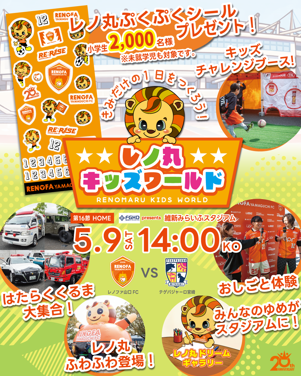 - クラブ情報 2026/04/15 5/9(土)宮崎戦は家族みんなでみらスタへ!『レノ丸キッズワールド』を開催!!